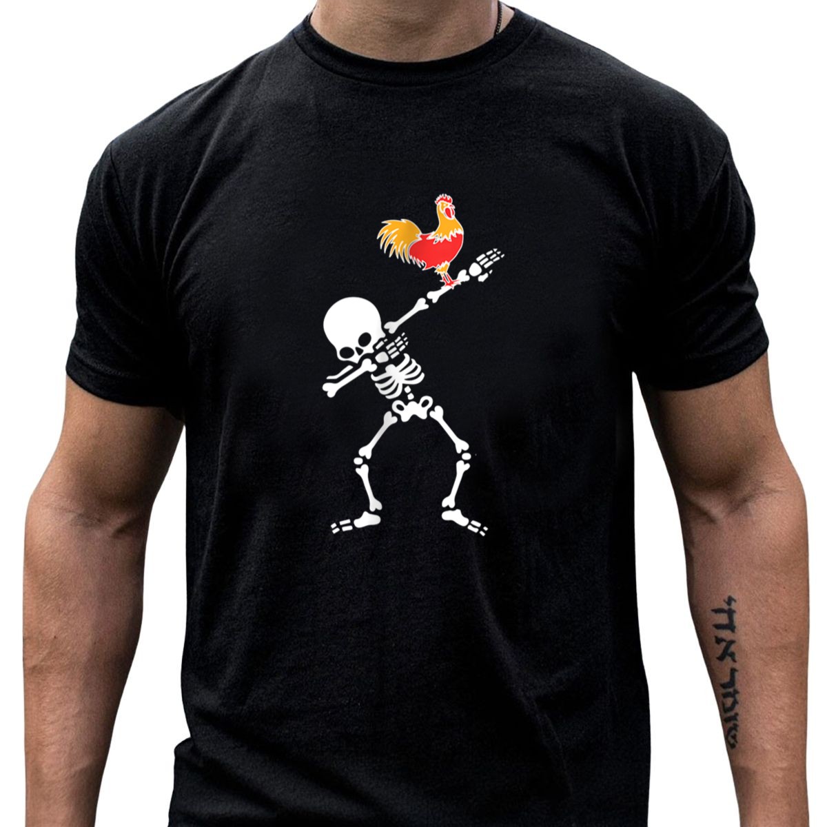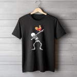Get ready to bring some fun and flair to your Halloween celebrations with our Halloween Skeleton Dabbing With Chicken T-Shirt! This unique and playful design is perfect for those who love to mix humor with holiday spirit. Ideal for casual wear, themed events, or just a daily dose of laughter, this shirt is sure to be a conversation starter. Show off your quirky style and love for Halloween while staying comfortable in this fan-made masterpiece, printed right here in the USA.