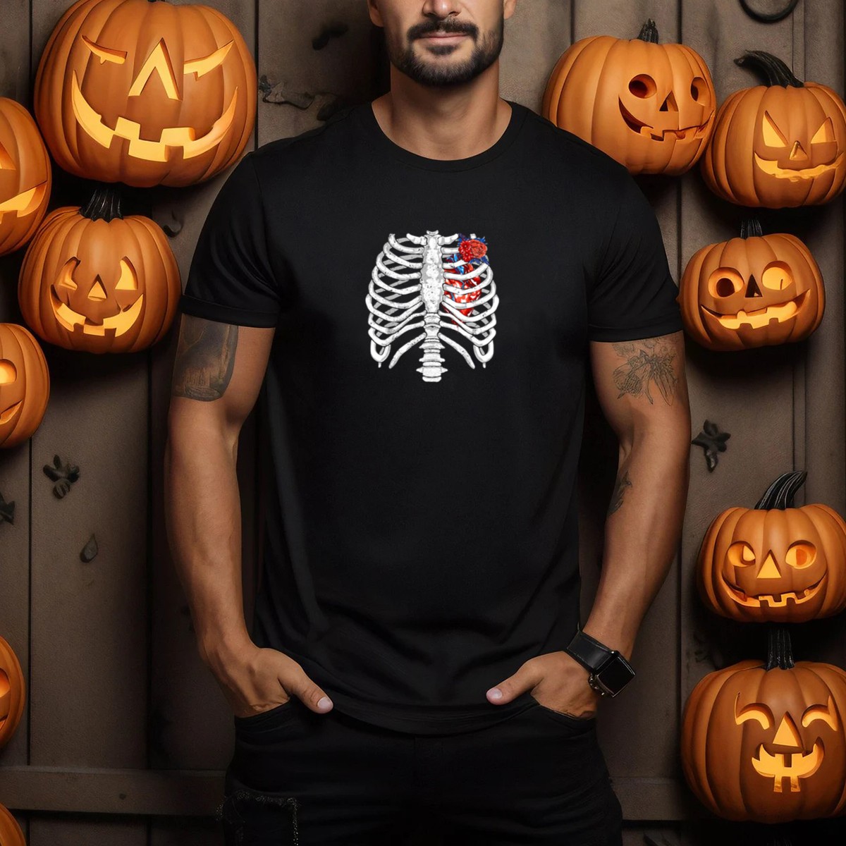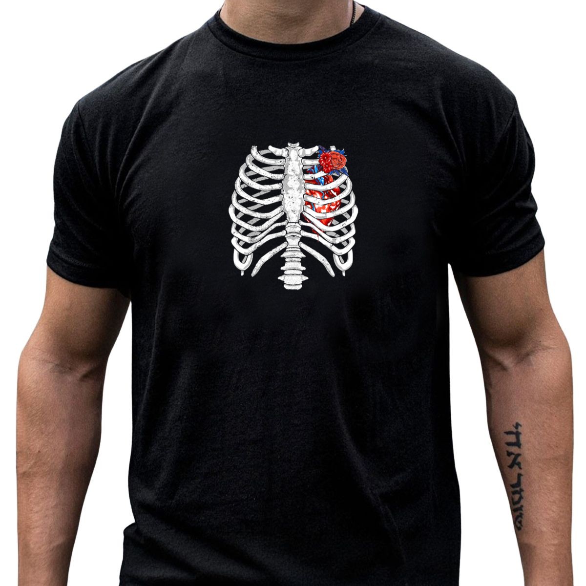 Be the first to review “Halloween Skeleton Rib Cage Heart With Flower T-Shirt”