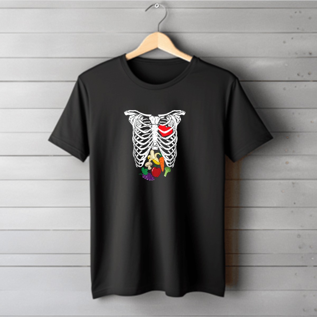 Be the first to review “Halloween Skeleton Rib Cage Heart X Ray Vegetarian Fruits Vegetables T-Shirt”