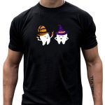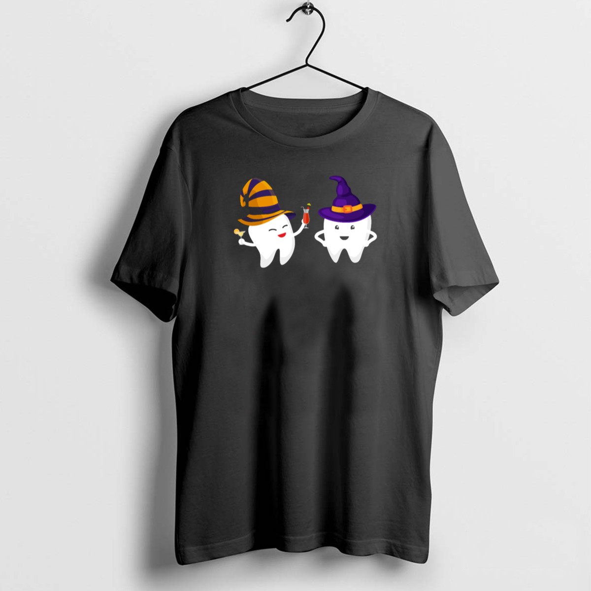 Embrace the spooky season with our Halloween Spooky Dental Office Funny Teeth In Witch Hats T-Shirt! Perfect for dental professionals, Halloween enthusiasts, or anyone who loves to celebrate in style, this shirt adds a fun twist to your casual wear. Whether you’re at a themed event, handing out candy, or just enjoying a laid-back day, this fan-made design, printed in the USA, is sure to turn heads and spark smiles.