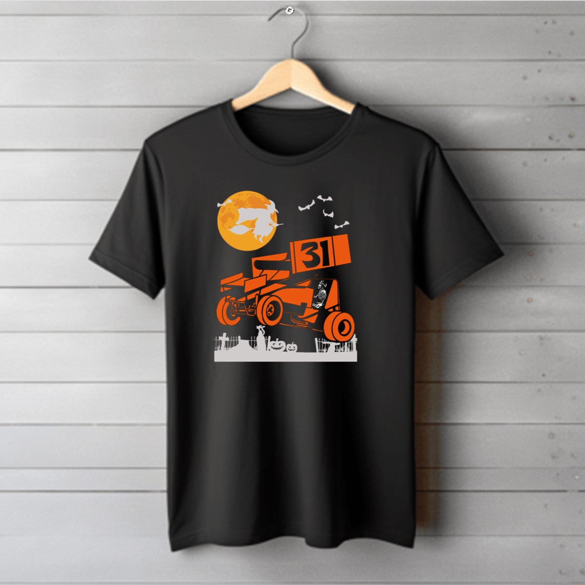 Get ready to rev up your Halloween spirit with our exclusive Sprint Car Dirt Track Racing Skeleton Number 31 T-shirt! Perfect for racing enthusiasts and Halloween lovers alike, this fan-made design is printed in the USA and showcases your passion for speed and thrills. Ideal for casual wear, themed events, or daily outings, this shirt is a must-have for anyone looking to make a statement on and off the track.