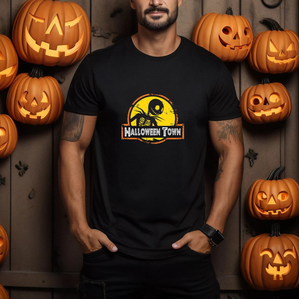 Embrace the spirit of Halloween with our Halloween Town Skeleton Jack OLantern Moon T-Shirt, perfect for fans of the spooky season and those who love to celebrate in style. This shirt features a whimsical design that captures the essence of Halloween, making it an ideal choice for casual wear, themed events, or daily outings. Crafted with care in the USA, this fan-made shirt is not just a piece of clothing; it’s a celebration of creativity and fun.