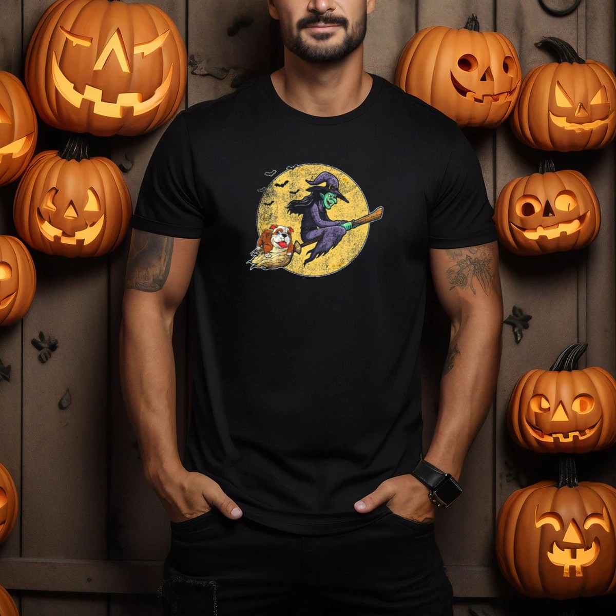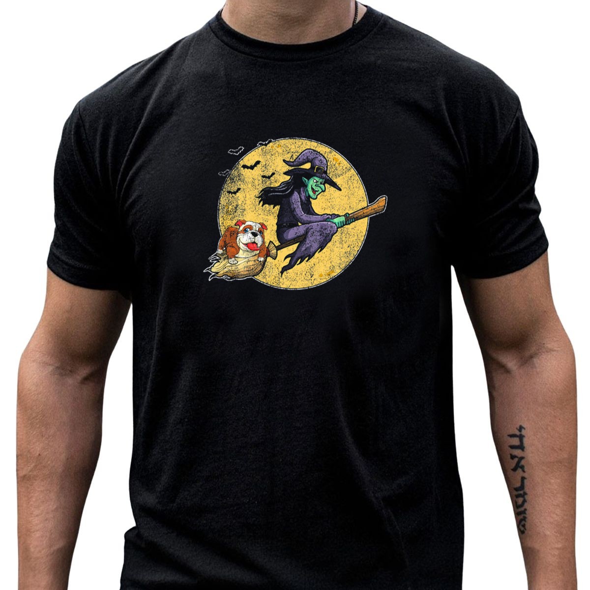 Embrace your love for Halloween and adorable bulldogs with our Witch Bulldog Dog Lovers T-Shirt! This fan-made design captures the spirit of the season, featuring a whimsical bulldog flying across a full moon. Perfect for dog lovers and Halloween enthusiasts alike, this shirt is ideal for casual outings, themed events, or simply showcasing your unique style every day. Printed in the USA, it’s a must-have for anyone looking to add a touch of fun to their wardrobe.
