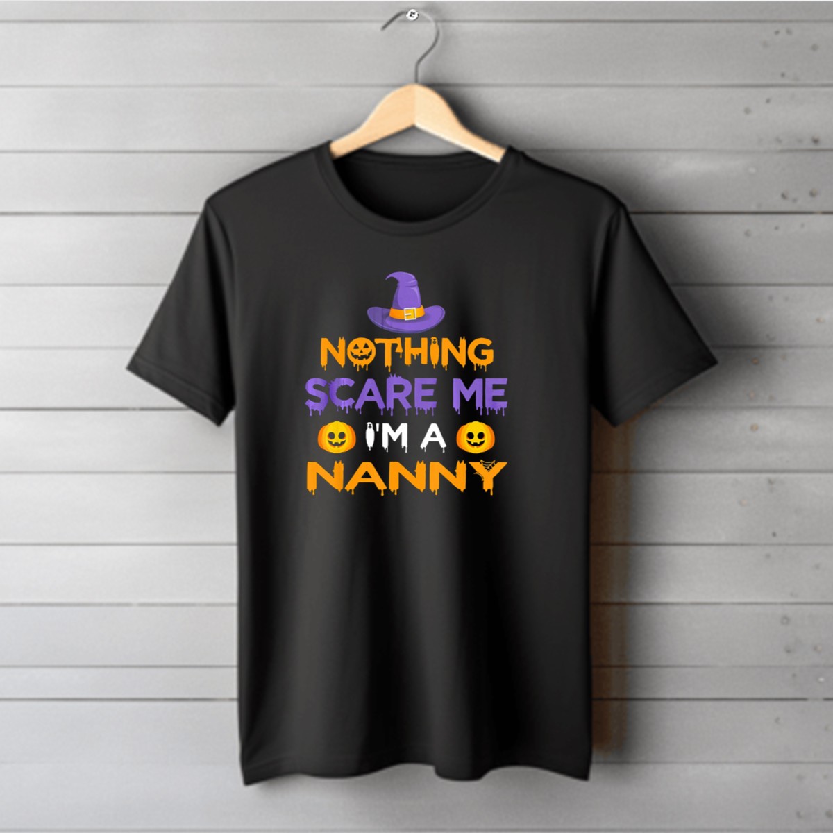 Be the first to review “Halloween Witch Hat Pumpkin Nothing Scare Me Im A Nanny T-Shirt”