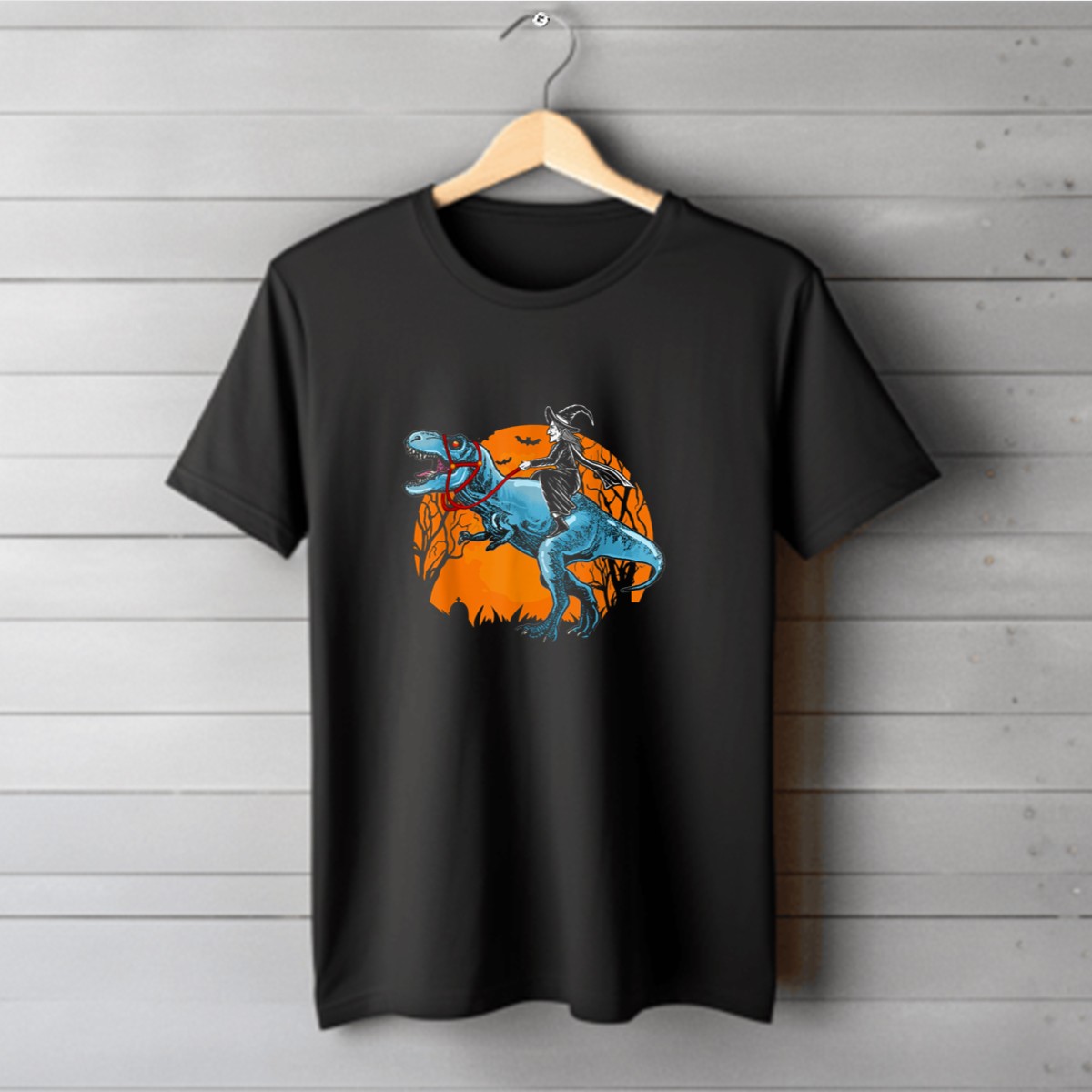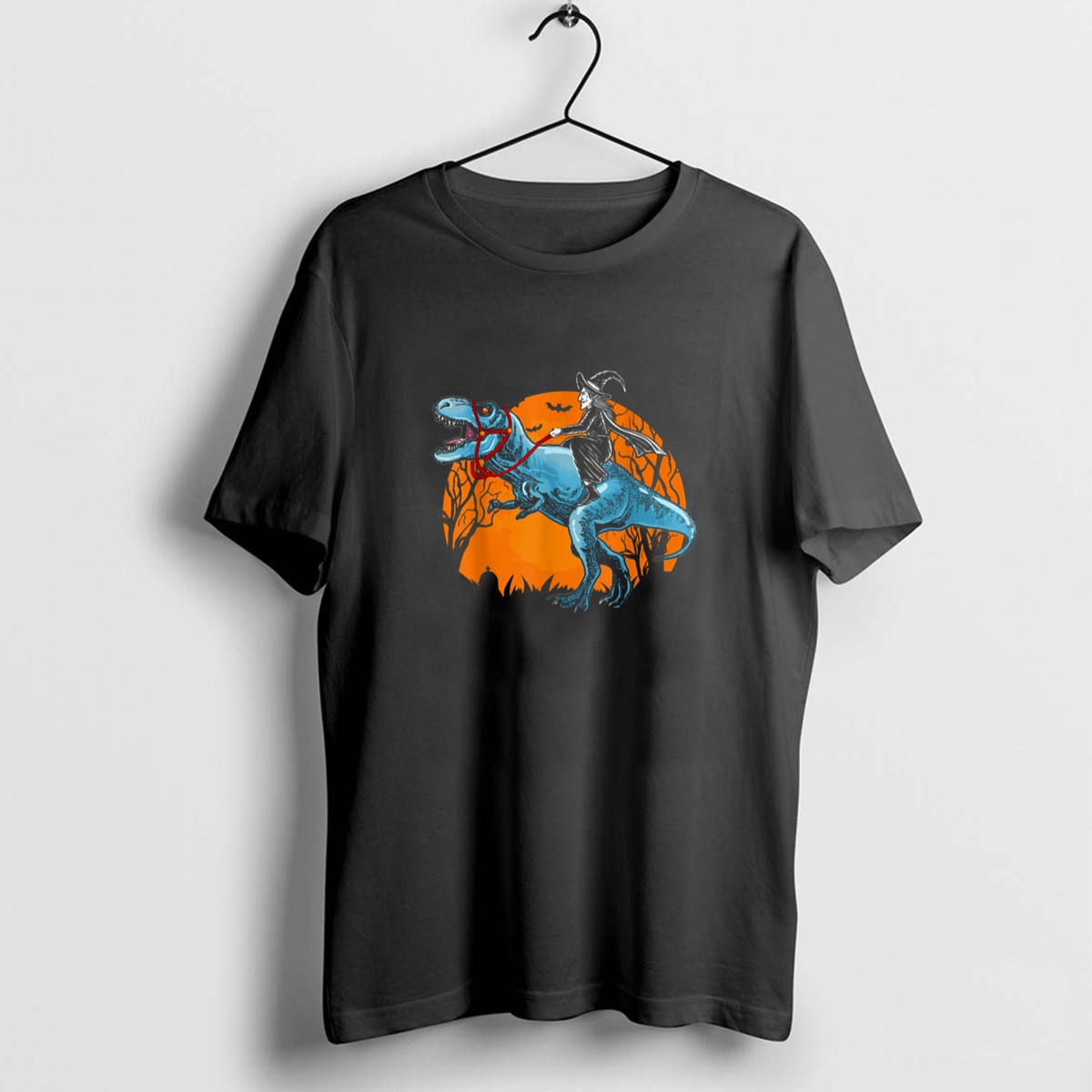 Embrace the spirit of Halloween with our whimsical “Witch Riding Dinosaur Rex With Moon Background” T-shirt! Perfect for those who love to stand out, this fan-made design captures the fun and magic of the season. Whether you’re heading to a themed event, enjoying a casual outing, or simply want to make a statement in your daily wear, this shirt is sure to turn heads and spark conversations. Made from high-quality materials and printed right here in the USA, it combines comfort with a unique style that celebrates your love for all things spooky and adventurous.