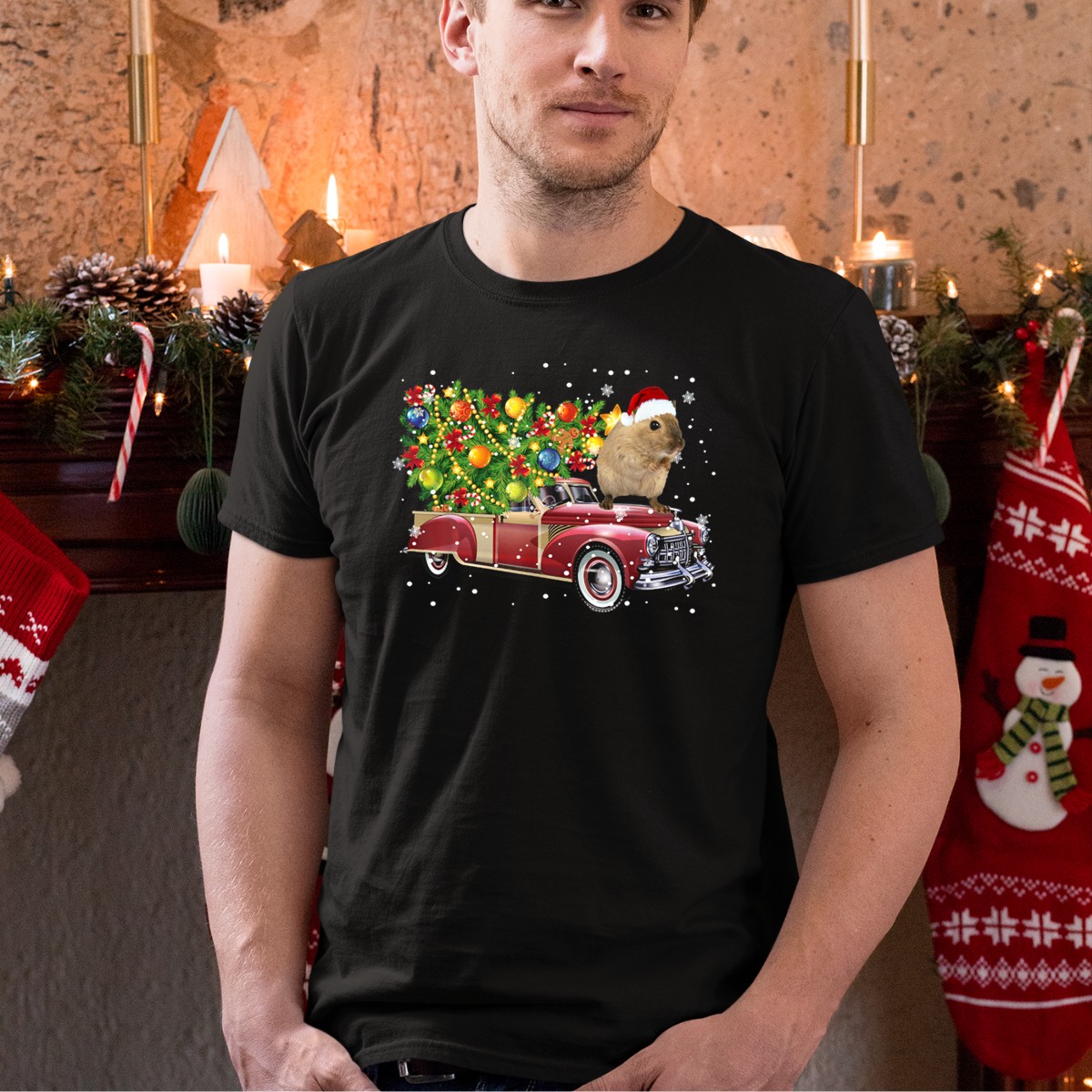 Get into the holiday spirit with our adorable “Hamster Wearing Santa Hat Riding Red Vintage Truck With Christmas Tree” T-shirt! Perfect for animal lovers and festive fun, this shirt is ideal for casual outings, themed events, or just spreading cheer during the holiday season. Made with a fan-made design and printed in the USA, it’s a unique addition to your wardrobe that showcases your love for pets and festive vibes.