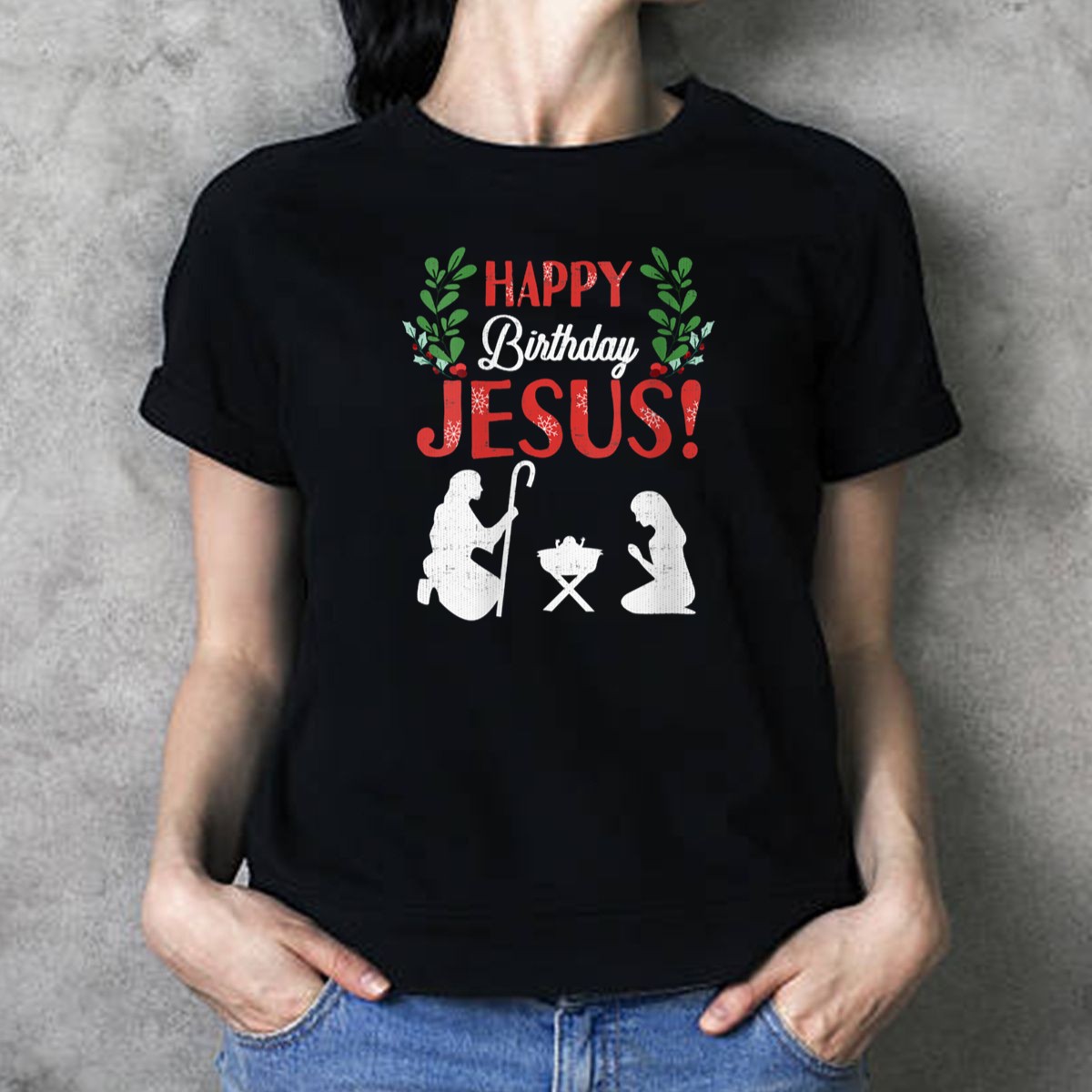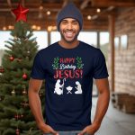 Celebrate the true meaning of Christmas with our Happy Birthday Jesus Christmas Manger Silhouette Shepherd T-Shirt. This tee is perfect for those who cherish the holiday spirit and want to spread joy during themed events, church gatherings, or casual outings. With its fan-made design proudly printed in the USA, this shirt not only embodies the festive cheer but also ensures comfort and style for all ages.