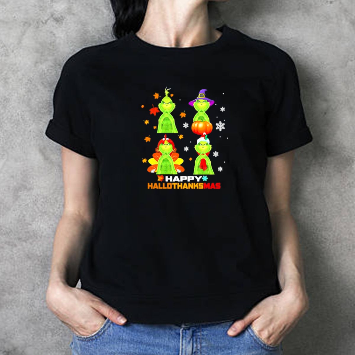Be the first to review “Happy Hallothanksmas Grinch Halloween Thanksgiving Christmas T-Shirt”