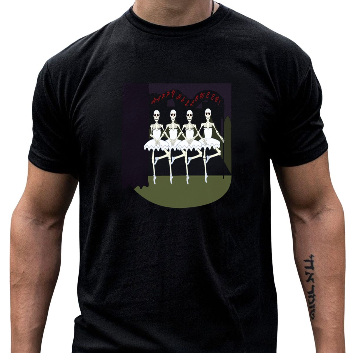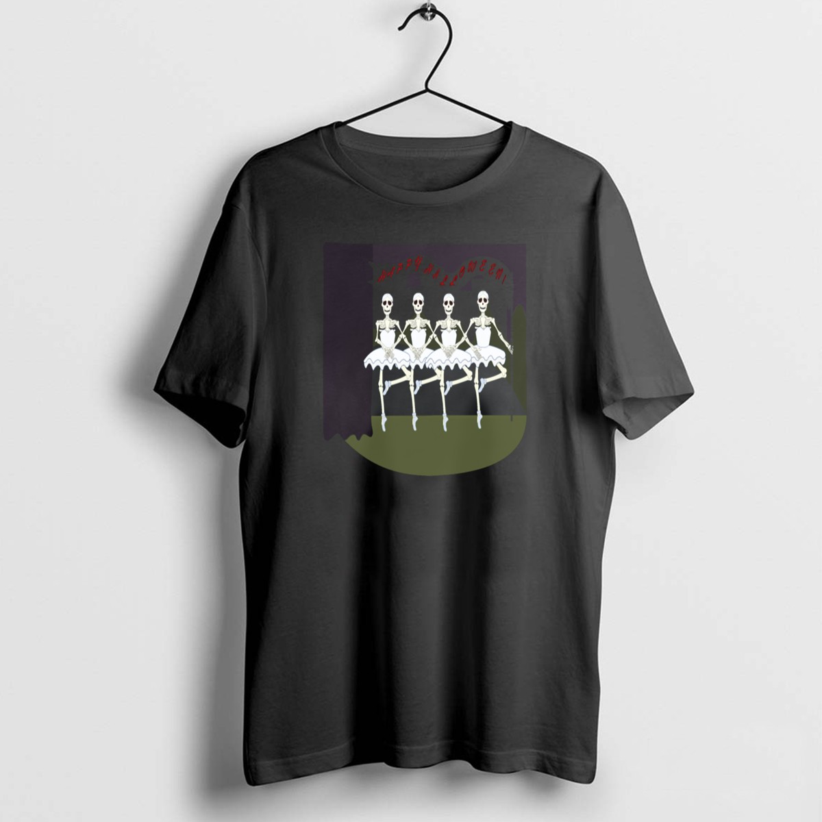 Get into the spirit of Halloween with our Happy Halloween Dancing Skeletons Ballerinas T-Shirt! Perfect for those who love to celebrate this spooky season in style, this fun and festive tee features a playful design that brings a touch of whimsy to your wardrobe. Whether you’re attending a themed party, going trick-or-treating, or just want to add some flair to your everyday casual wear, this shirt is sure to turn heads and spread smiles. Made with care in the USA, this fan-made design is a unique addition to any Halloween enthusiast’s collection.