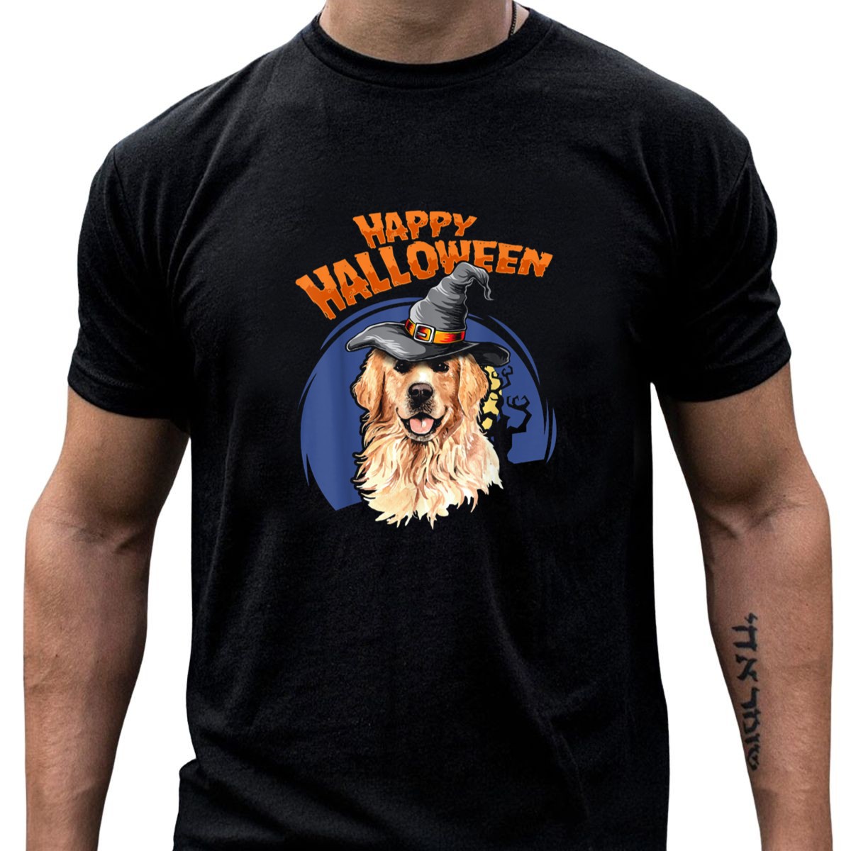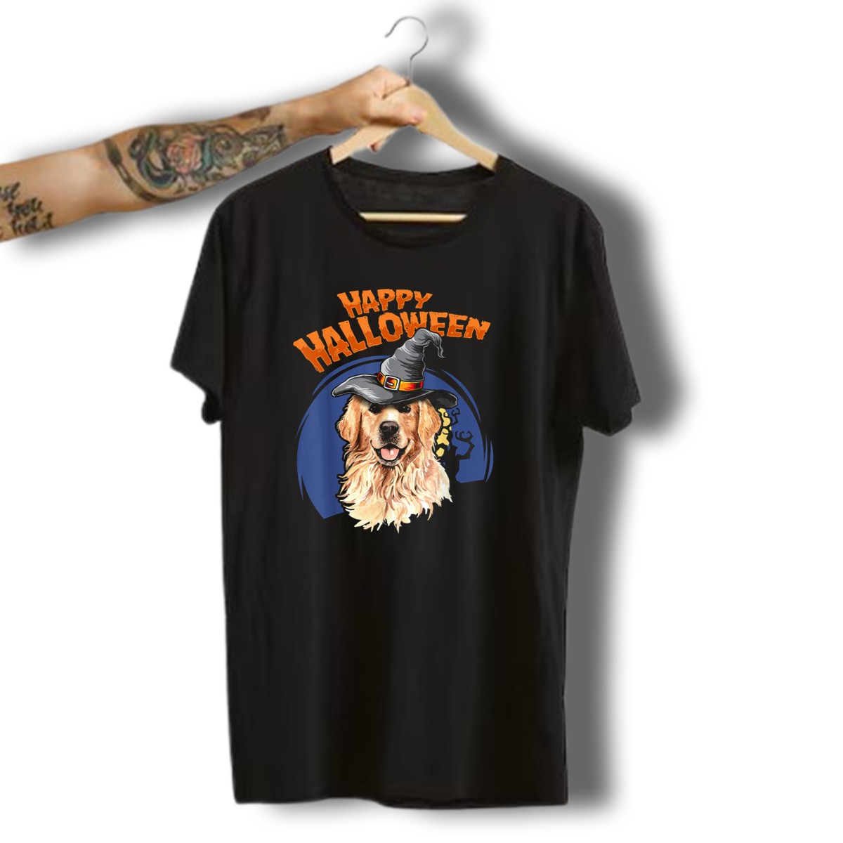 Happy Halloween Golden Retriever Witch Hat T-Shirt