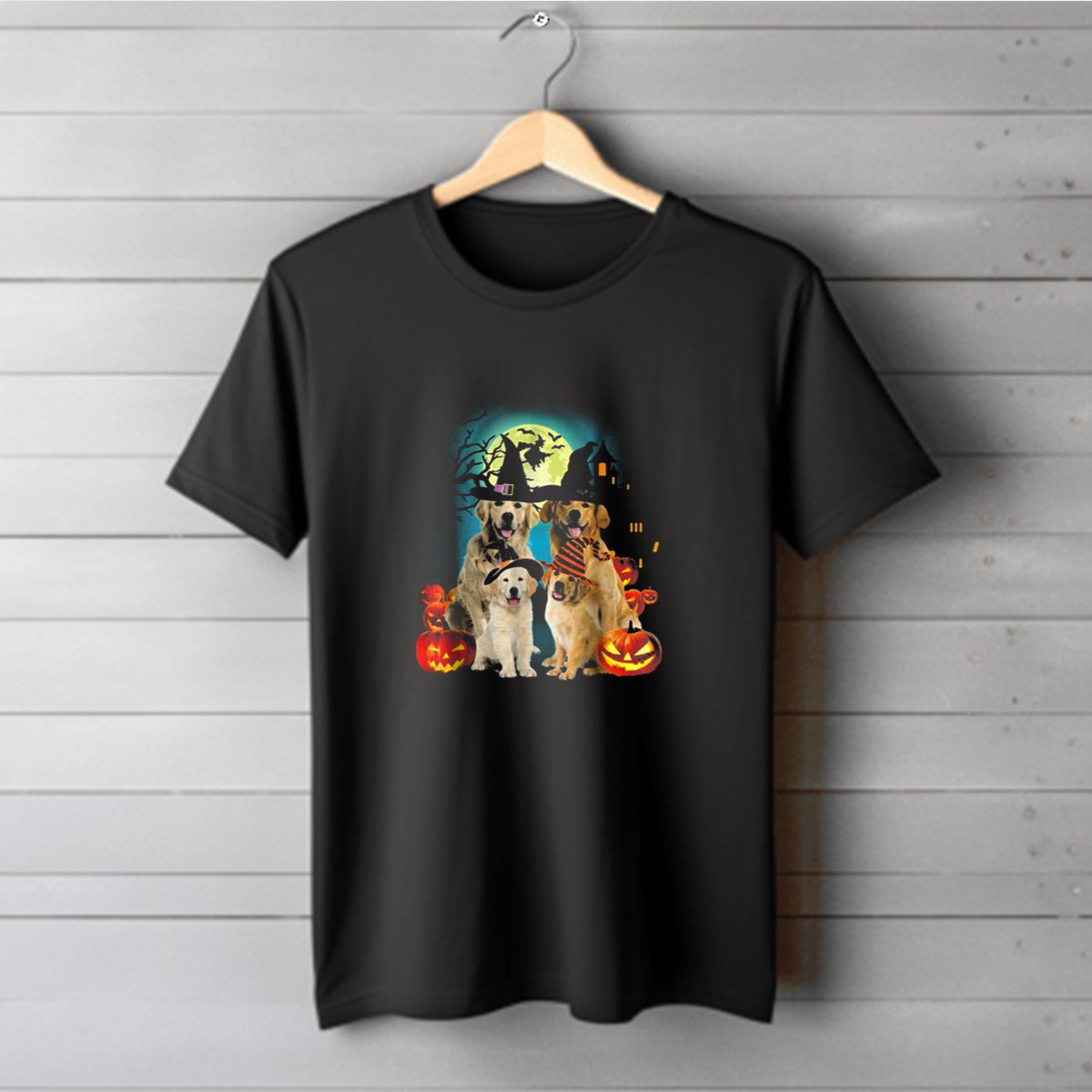 Celebrate the spirit of Halloween with our Happy Halloween Little Witch Golden Dog Jack O Lantern Moon T-Shirt! This delightful design is perfect for dog lovers and Halloween enthusiasts alike. Its whimsical theme brings joy to casual outings, themed events, or simply lounging around at home. Made with care and printed in the USA, this shirt is not just a treat for the eyes but also a comfy addition to your wardrobe.
