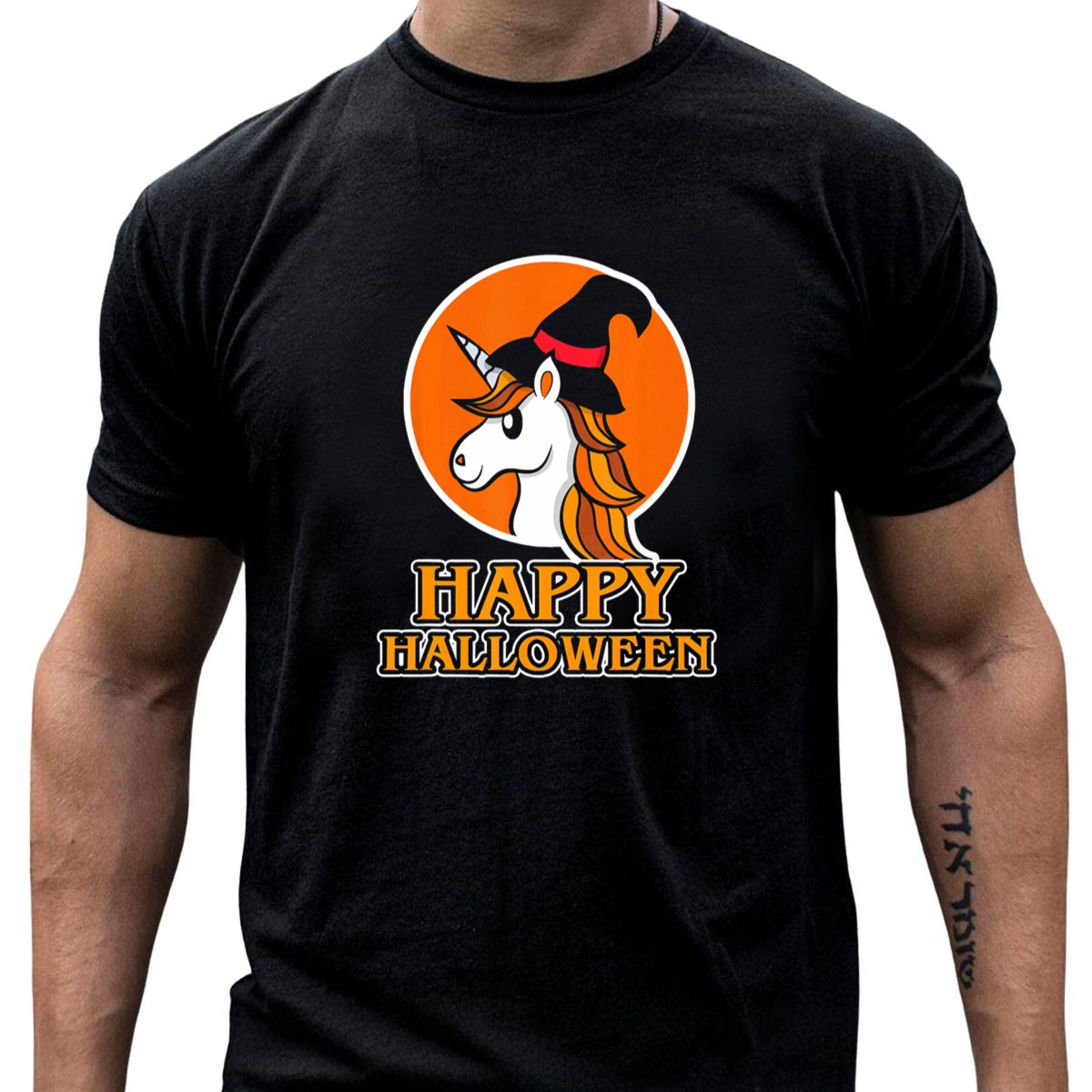 Embrace the spirit of Halloween with our whimsical Happy Halloween Unicorn T-Shirt! Perfect for unicorn lovers and those who enjoy a touch of magic, this shirt features an enchanting design of a unicorn wearing a festive witch hat. Ideal for casual wear, themed events, or just spreading some Halloween cheer, this fan-made graphic tee is a must-have for anyone looking to celebrate the season in style. Printed in the USA, it combines fun with quality for a delightful addition to your wardrobe.