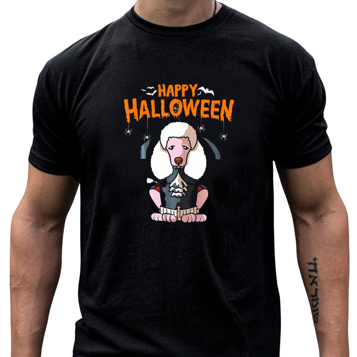 Happy Halloween Vampire Poodle With Bats And Spiders T-Shirt