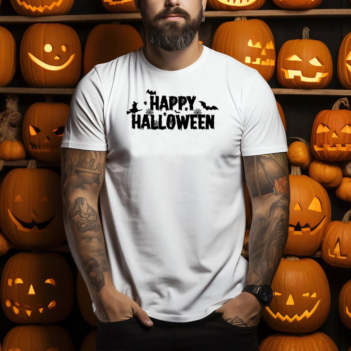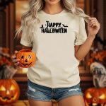 Celebrate the spooky season in style with our Happy Halloween T-Shirt, featuring a whimsical design of witch bats, cobwebs, and playful typography elements. Perfect for Halloween enthusiasts and anyone looking to add a festive touch to their casual wardrobe, this shirt is ideal for themed events, parties, or just everyday wear. Made with fan-made designs printed right here in the USA, it ensures you stand out while embracing the spirit of Halloween.
