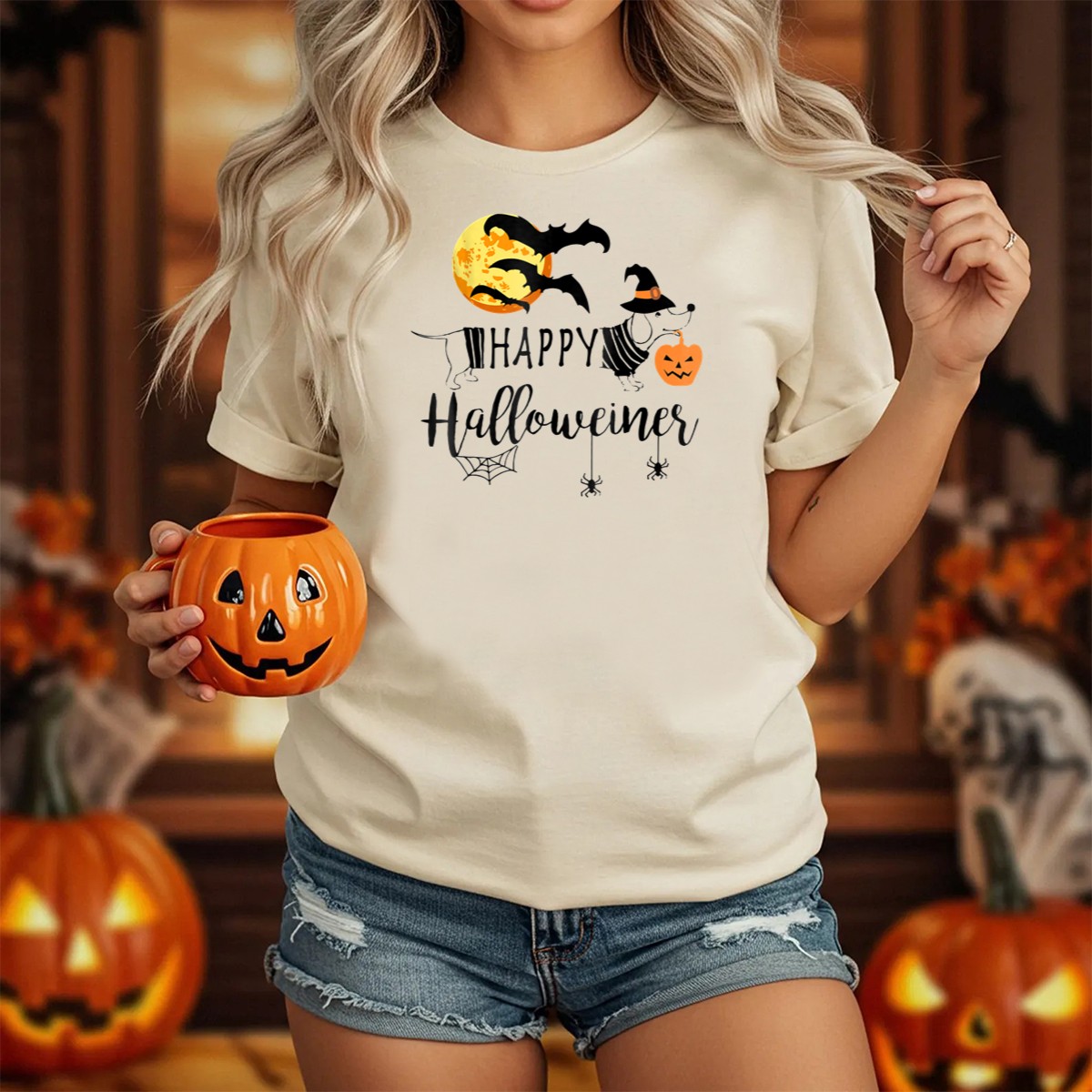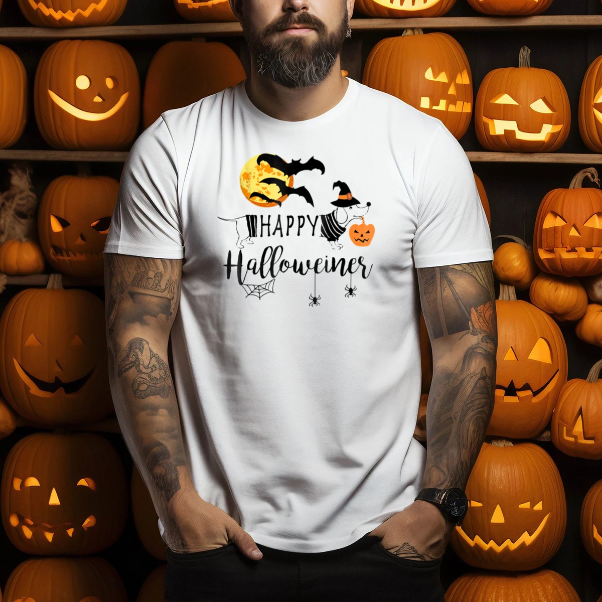 Embrace the spirit of Halloween with our Happy Halloweiner Dachshund Witch Pumpkin Bats T-Shirt! Perfect for dog lovers and Halloween enthusiasts alike, this unique design features an adorable dachshund dressed as a witch, surrounded by festive pumpkins and playful bats against a spooky moon backdrop. Ideal for casual wear, themed events, or just a fun day out, this shirt is a must-have for anyone wanting to showcase their love for both dachshunds and the Halloween season. Stand out in style and celebrate the festivities with this fan-made design, proudly printed in the USA!