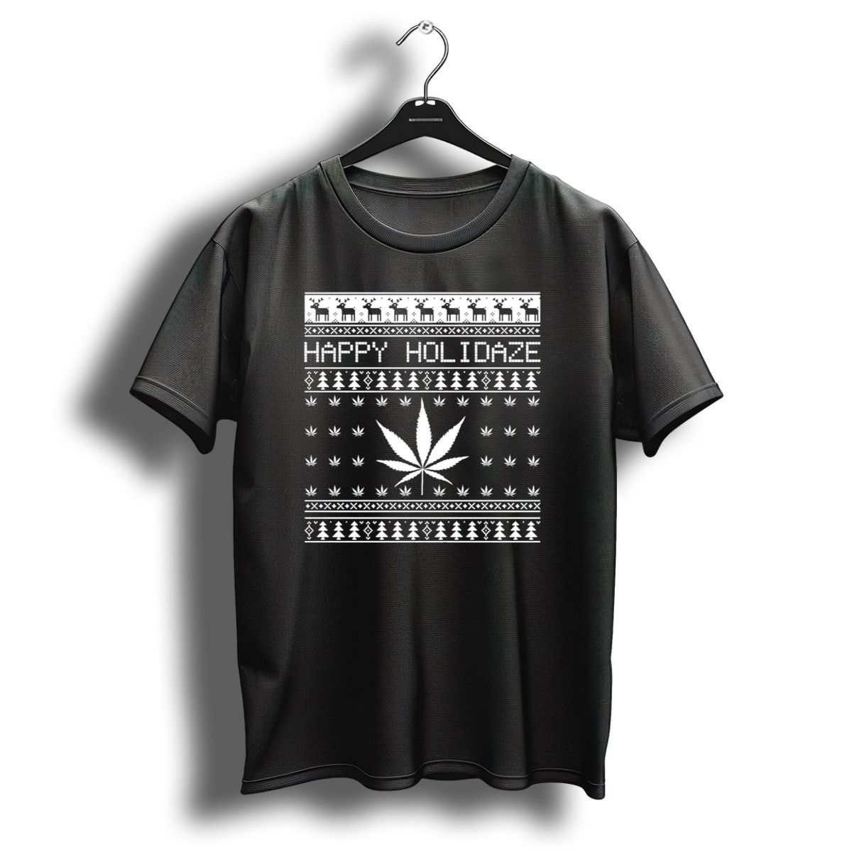 Happy Holidaze Cannabis Christmas Reindeer Trees T Shirt