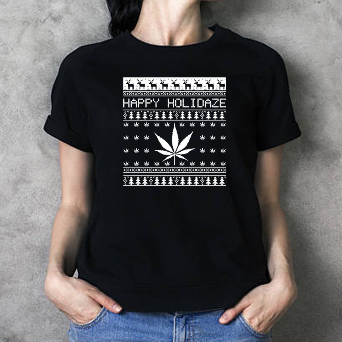 Be the first to review “Happy Holidaze Cannabis Christmas Reindeer Trees T Shirt”