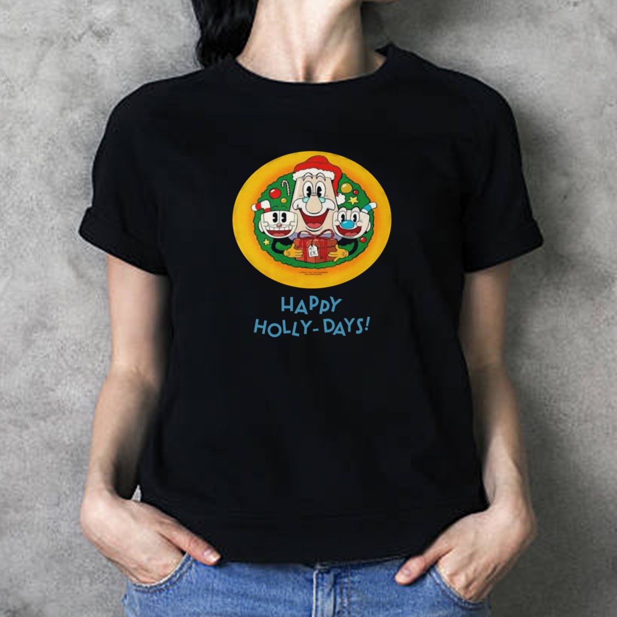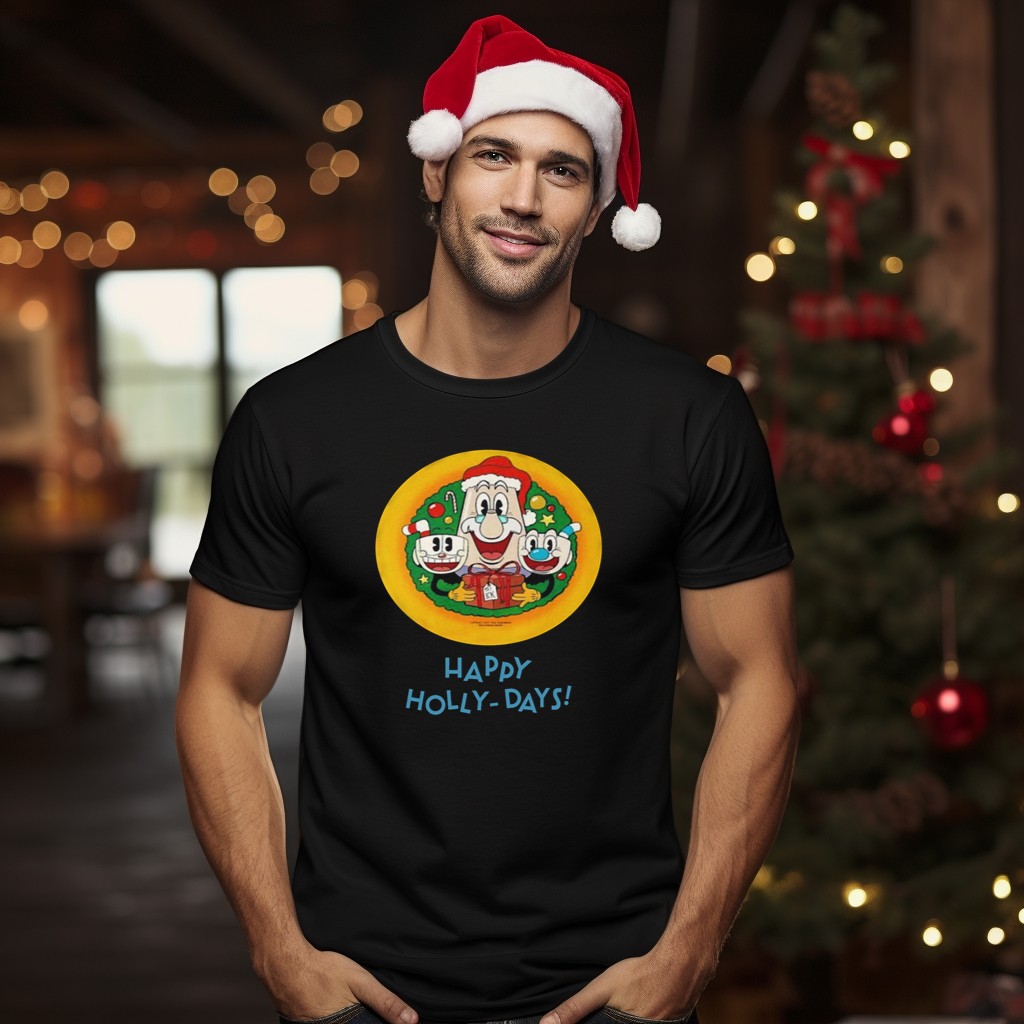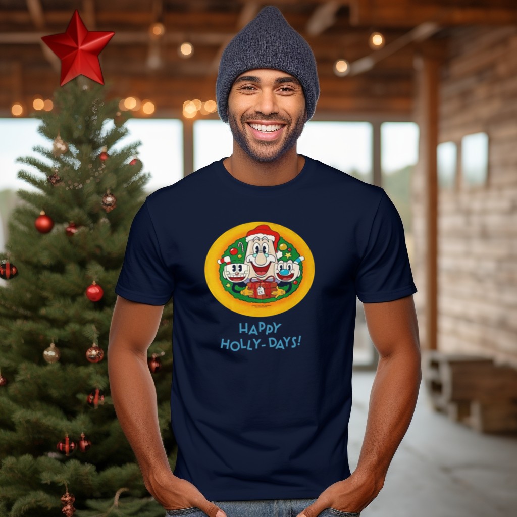 Be the first to review “Happy Holly Days Christmas Santa Cuphead And Mugman T-Shirt”
