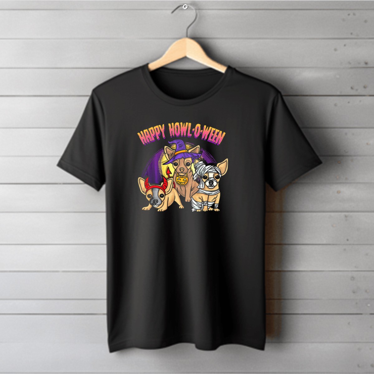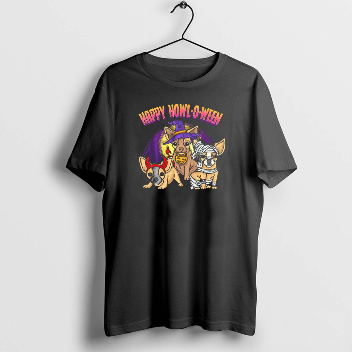 Get ready to celebrate Halloween in style with our Happy Howl O Ween T-shirt, featuring an adorable Chihuahua dressed as a devil and a mummy. Perfect for dog lovers and Halloween enthusiasts alike, this fun and quirky shirt is ideal for casual outings, themed events, or just lounging around at home. Made in the USA, this fan-made design combines comfort with a festive spirit, making it a must-have for your fall wardrobe.