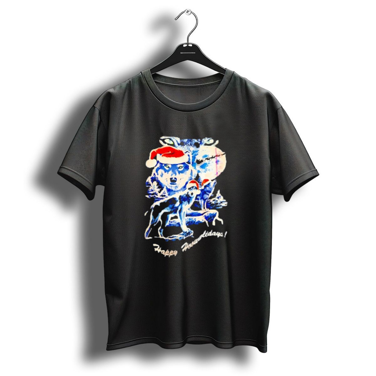 Celebrate the festive season with our Happy Howlidays Wolves Santa Hats Christmas T-Shirt! Perfect for animal lovers and holiday enthusiasts alike, this playful design features adorable wolves donning Santa hats, bringing a cheerful touch to your casual wear. Ideal for themed events, family gatherings, or simply spreading holiday cheer, this shirt is a unique addition to your wardrobe that showcases your love for both Christmas and furry friends.