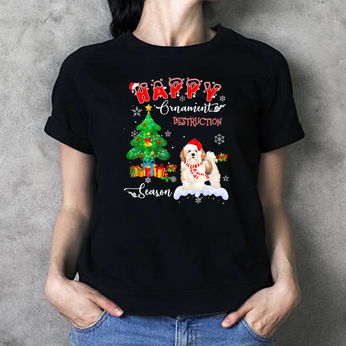 Celebrate the joy of the holiday season with our “Happy Ornament Destruction Season” T-shirt featuring an adorable Lhasa Apso design! Perfect for dog lovers and holiday enthusiasts alike, this shirt is ideal for casual gatherings, themed events, or simply lounging around during the festive season. Made with a fan-made design printed in the USA, it captures the playful spirit of your furry friend and adds a touch of humor to your holiday wardrobe.