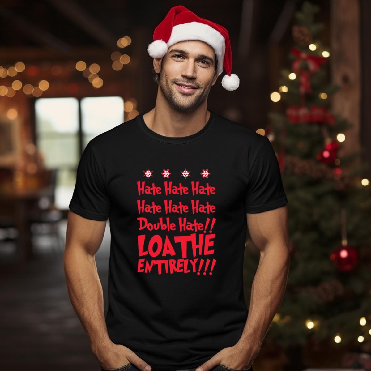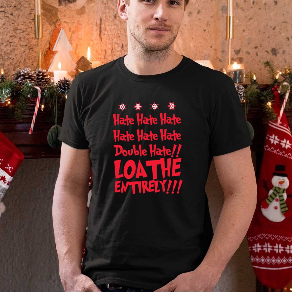 Embrace the holiday spirit with our “Hate Hate Hate Double Hate Loathe Entirely” Grinch Stole Christmas Red Snowflake T-Shirt! Perfect for fans of the classic tale, this shirt is designed for anyone looking to add a touch of festive fun to their casual wardrobe. Whether you’re heading to a themed event, a holiday party, or simply enjoying daily wear, this unique fan-made design will keep you cozy and stylish throughout the season. Printed in the USA, it’s a must-have for every Grinch enthusiast!