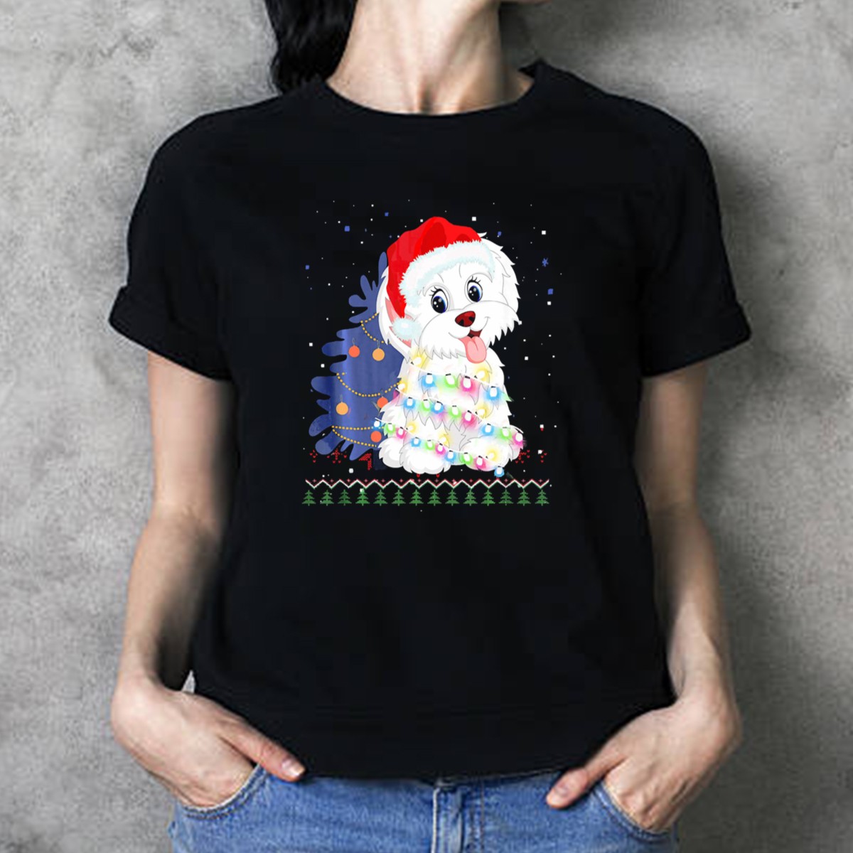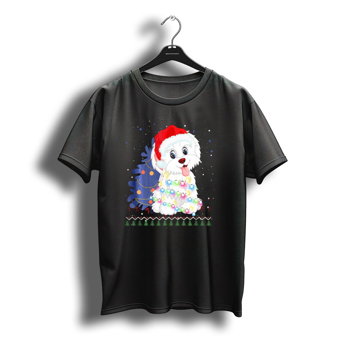 Havanese Christmas Tree Lights Santa Hat Holiday T-Shirt
