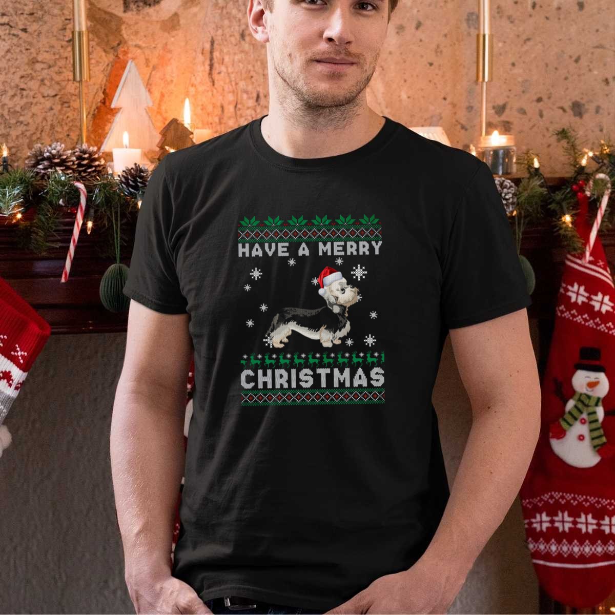 Have A Merry Christmas Dandie Dinmont Terrier Santa Hat Snowflakes Festive T Shirt