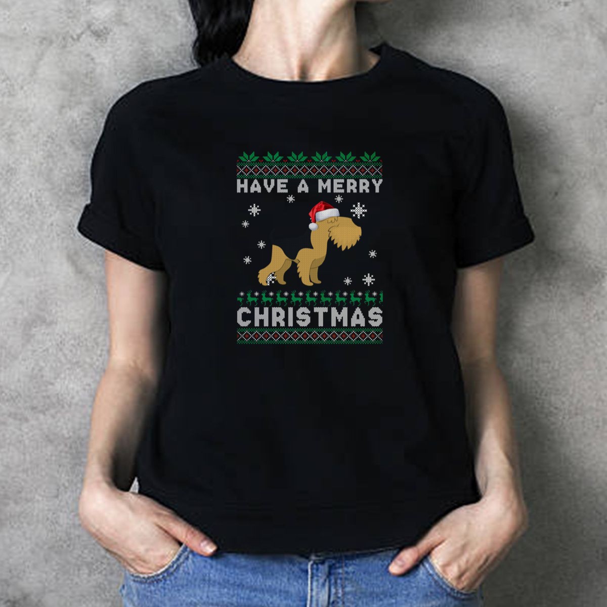 Have A Merry Christmas Lakeland Terrier Santa Hat Holiday Sweater Snowflakes T Shirt