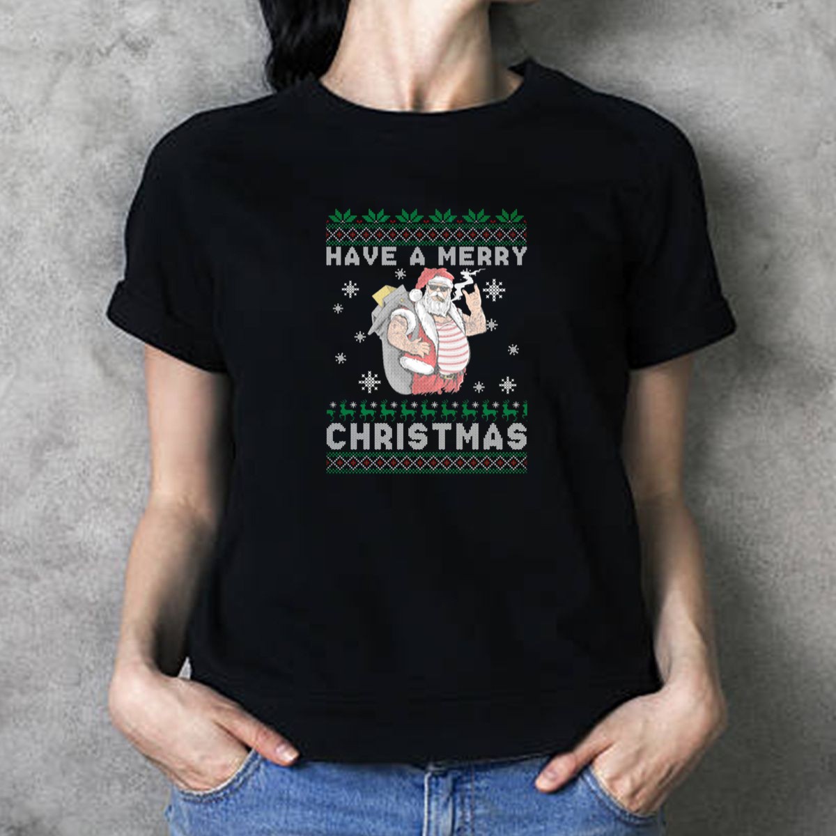 Be the first to review “Have A Merry Christmas Santa With Smoke Snowflakes And Reindeer T Shirt”