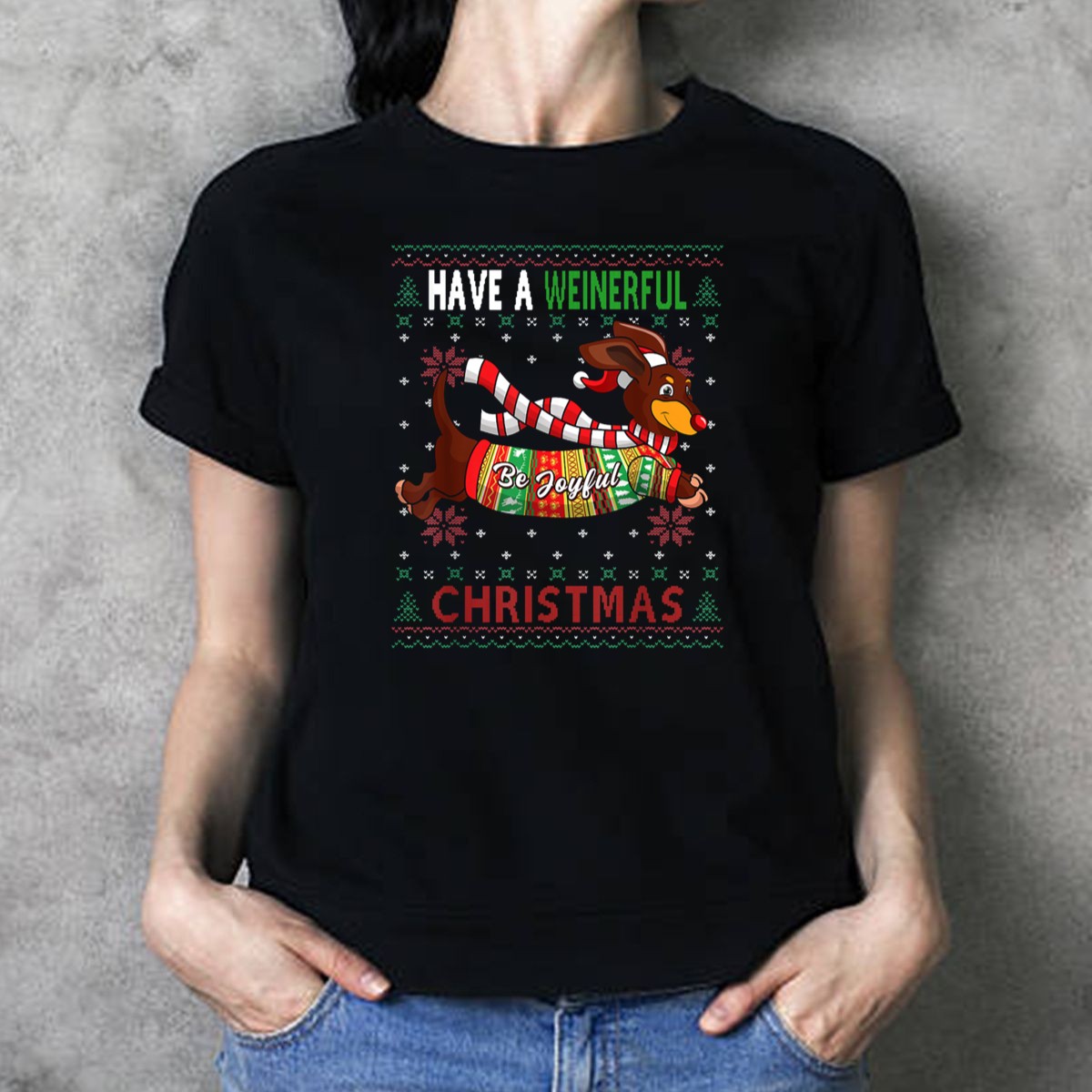 Celebrate the holiday season with our “Have A Weinerful Be Joyful Christmas” Dachshund Ugly Doxie Lover T-Shirt! Perfect for dog lovers and those who appreciate a good pun, this shirt is designed for casual wear during festive gatherings, themed events, or simply while enjoying your daily routine. Made for comfort and style, it’s a unique addition to your wardrobe that showcases your love for dachshunds in a fun, cheerful way.