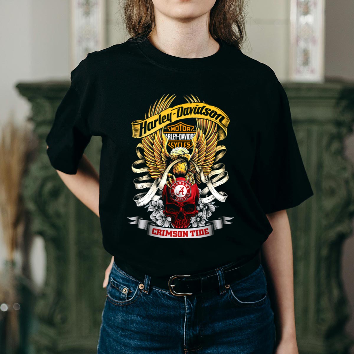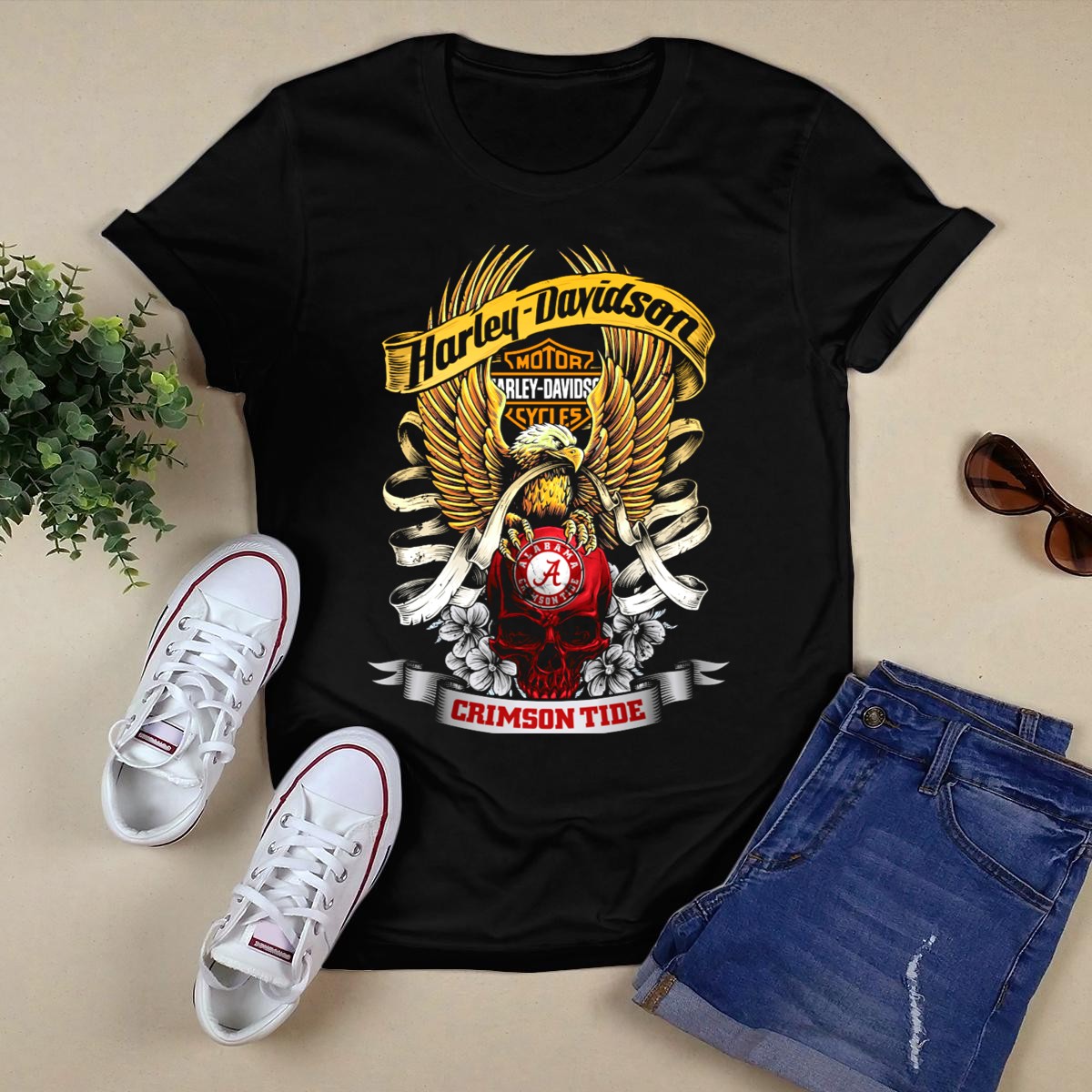 Show off your team spirit with this HD Alabama Crimson Tide 49Hd Eagles Skulls Roses T-Shirt, designed for die-hard fans who love to make a statement. Perfect for casual outings, game day celebrations, or themed events, this unique shirt combines bold graphics with a classic fit, ensuring you stand out while staying comfortable. Made in the USA, this fan-made design is a must-have for anyone looking to showcase their love for the Alabama Crimson Tide in style.