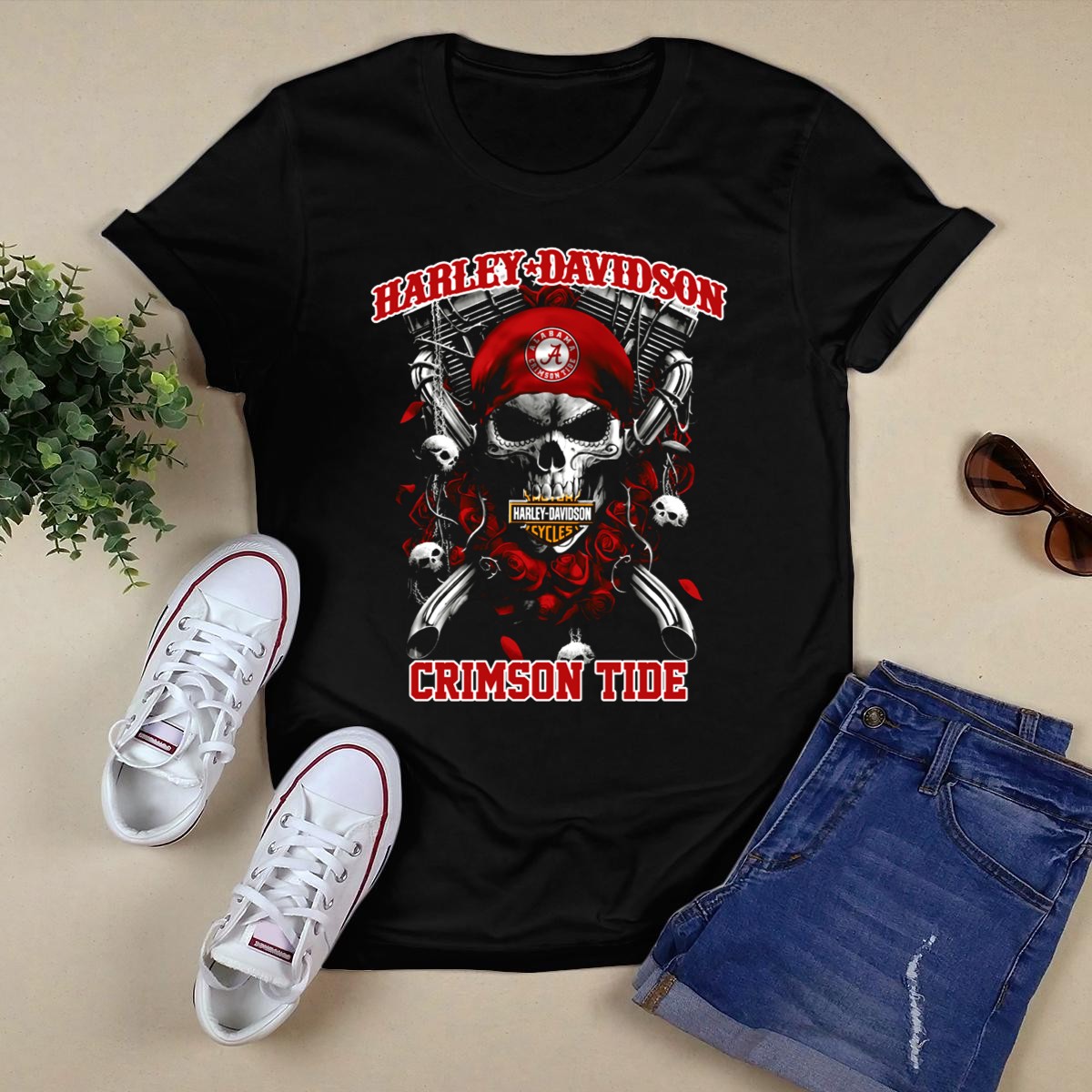 Show off your team spirit with our HD Alabama Crimson Tide Skull And Roses T-Shirt! This fan-made design beautifully blends iconic skull imagery with vibrant roses, making it perfect for die-hard Alabama supporters who want to stand out at games, themed events, or casual outings. Crafted for comfort and style, this shirt is a must-have for any Crimson Tide enthusiast looking to express their passion in a unique way.