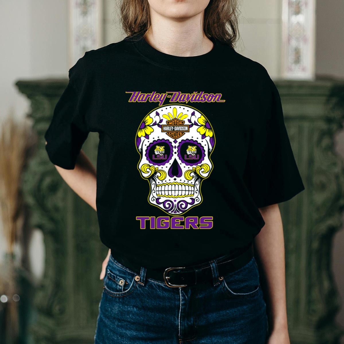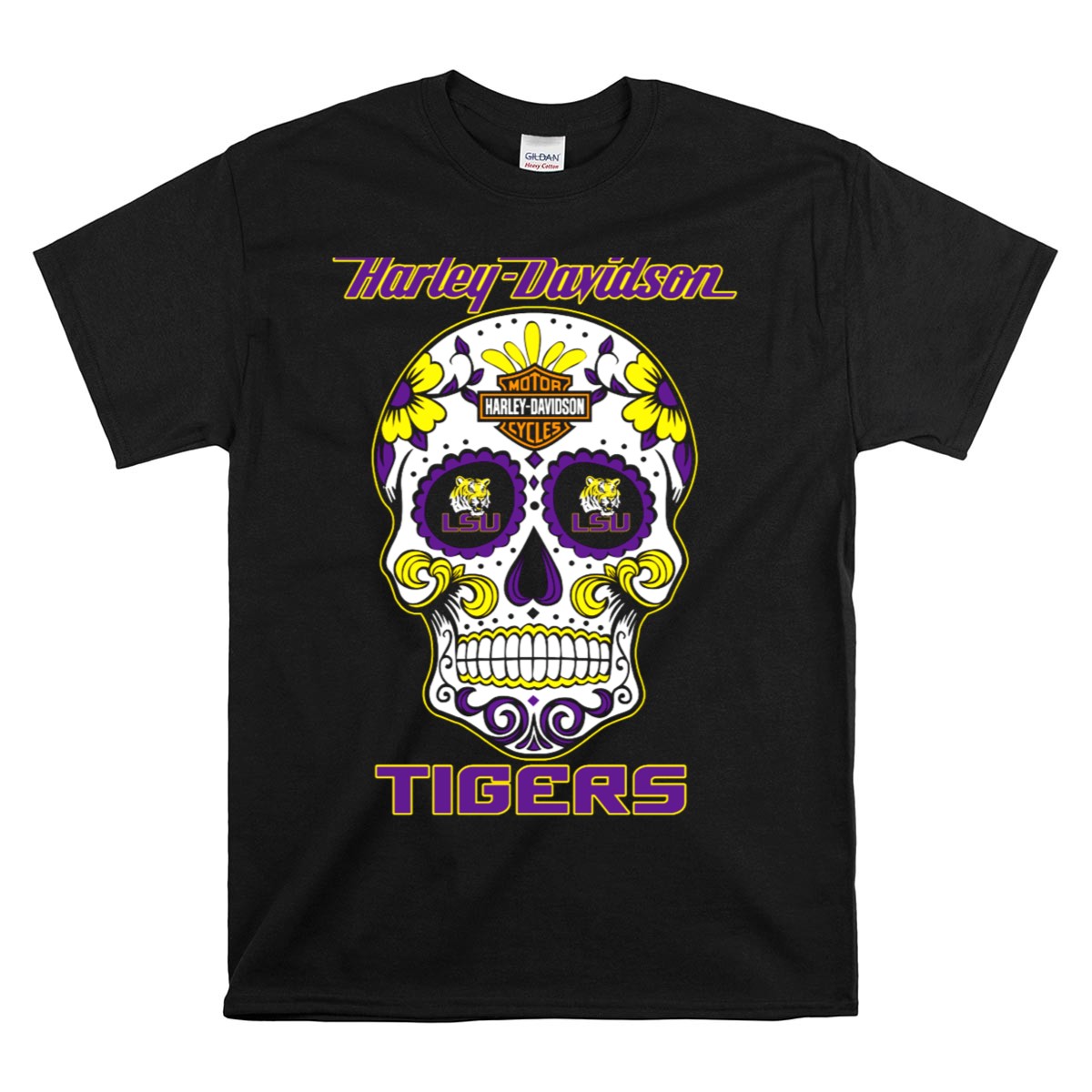 Show off your love for the LSU Tigers with our HD LSU Tigers Sugar Skull T-Shirt! This unique fan-made design combines the spirit of the Tigers with a vibrant sugar skull motif, making it the perfect choice for passionate fans and anyone looking to make a statement. Ideal for casual wear, themed events, or daily outings, this shirt not only showcases your team pride but also adds a touch of personality to your wardrobe. Printed in the USA, it’s a must-have for any true LSU enthusiast!