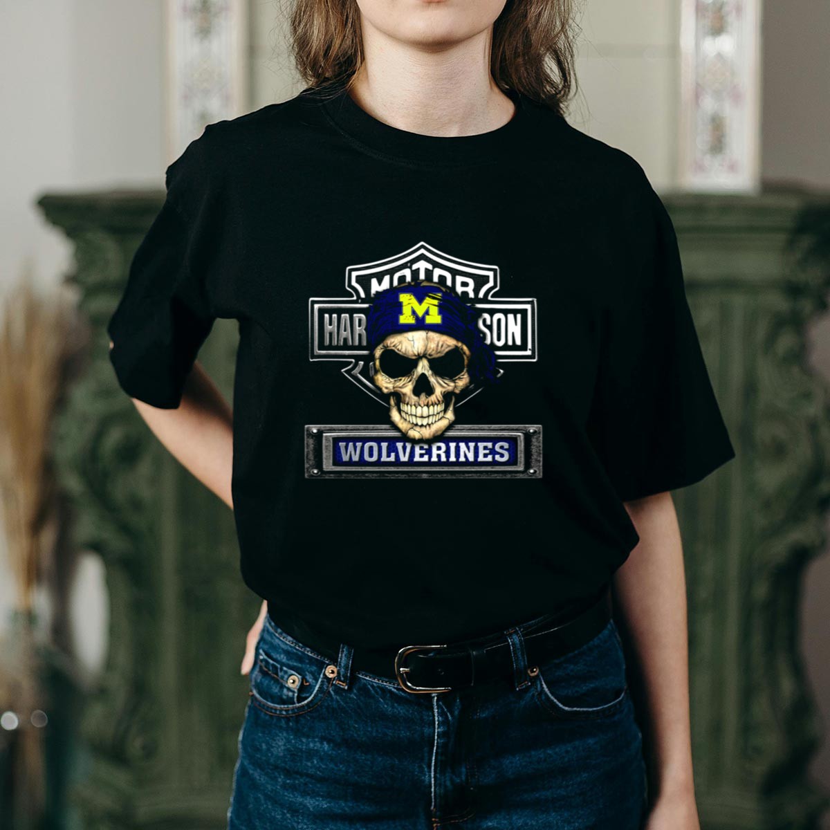 Be the first to review “Hd Michigan Wolverines Skull Biker T-Shirt”