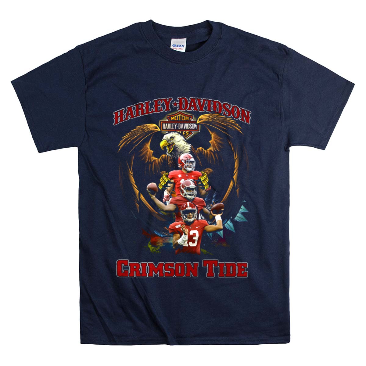 Show your unwavering support for the Alabama Crimson Tide with our HD Motor Eagle T-Shirt, a must-have for any true fan! This shirt features a striking and bold design that captures the spirit of the team, making it perfect for casual outings, themed events, or just showing off your pride on game day. Made for comfort and style, it’s a unique addition to any fan’s wardrobe, printed right here in the USA.