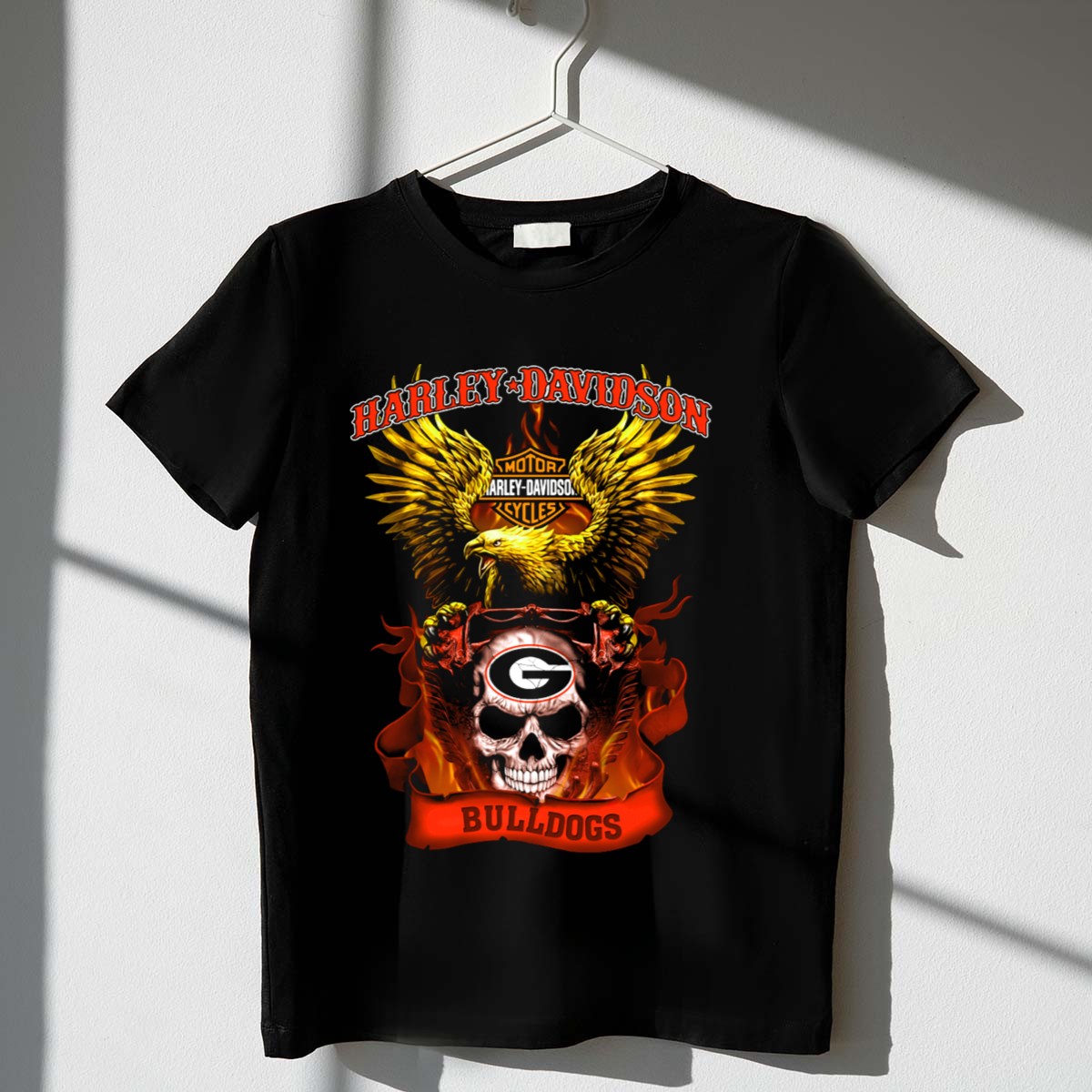 Show your pride for the Georgia Bulldogs with this striking HD Motorcycles Skull Eagle T-Shirt. Perfect for fans of all ages, this shirt combines a bold design with a classic fit, making it an excellent choice for casual outings, themed events, or daily wear. Crafted for comfort and style, it’s the ideal way to showcase your team spirit while enjoying the soft, breathable fabric that keeps you feeling great all day long.