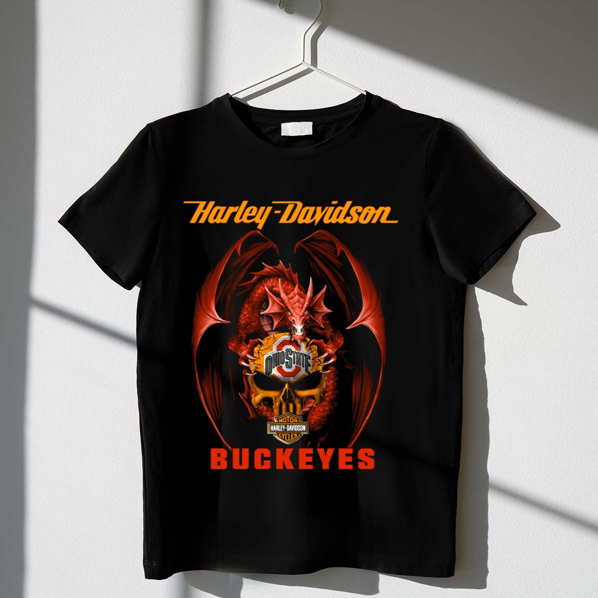 Unleash your spirit with the Harley Davidson Ohio State Buckeyes Dragon Motor Cycles T-Shirt, a perfect blend of collegiate pride and motorcycle culture. Designed for fans of the Buckeyes and motorcycle enthusiasts alike, this shirt is ideal for casual outings, themed events, or just hanging out with friends. Its unique fan-made design printed in the USA showcases your love for both the Ohio State Buckeyes and the thrill of the open road.