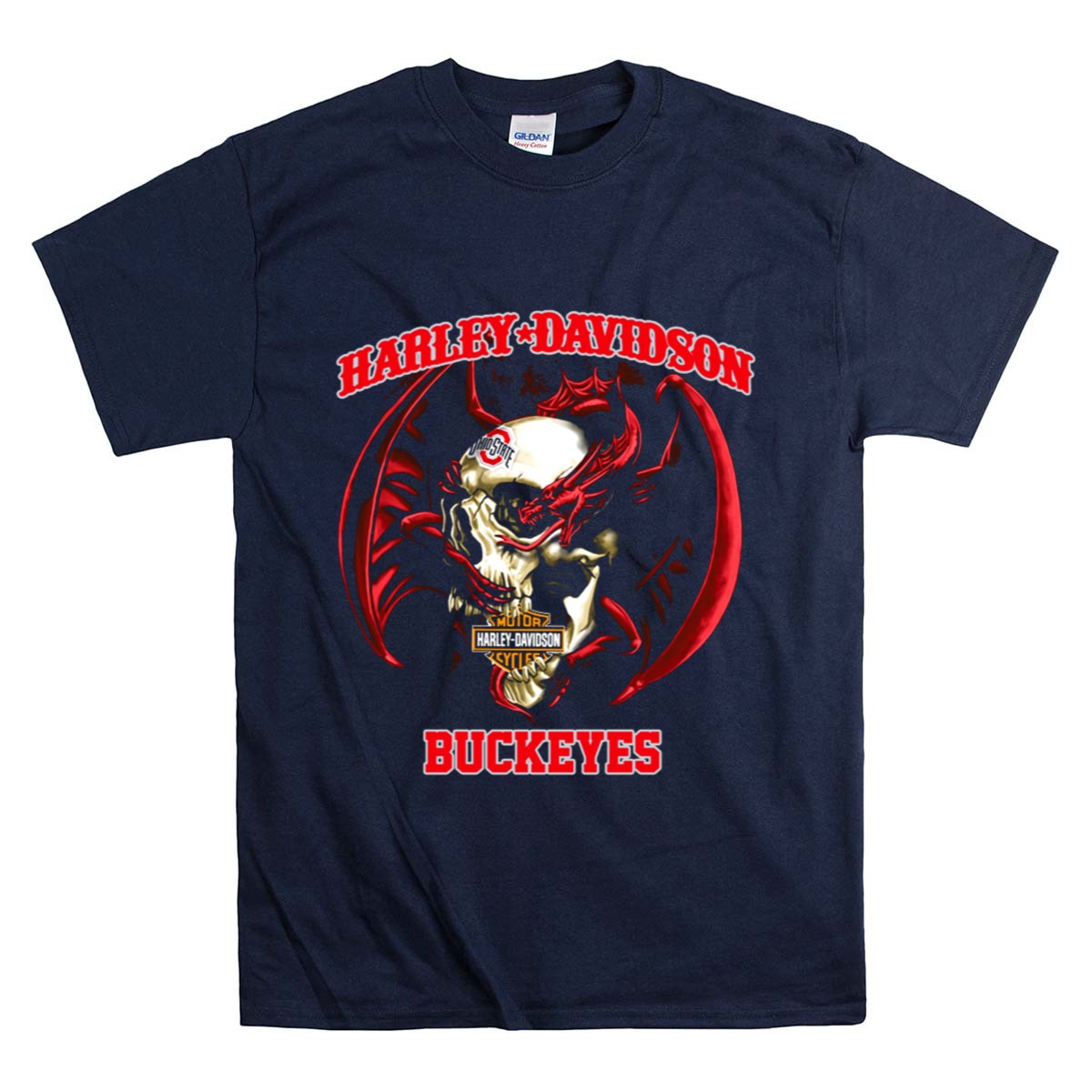 Show your unwavering support for the Ohio State Buckeyes with our Harley Davidson-inspired Skull and Wings T-Shirt. This iconic tee combines the rugged spirit of Harley Davidson with the boldness of Buckeyes fandom, making it the perfect addition to any casual outfit or themed event. Crafted for comfort and style, this shirt is ideal for game days, outings with friends, or simply showcasing your love for both brands. Embrace your passion and stand out with this unique fan-made design, proudly printed in the USA.