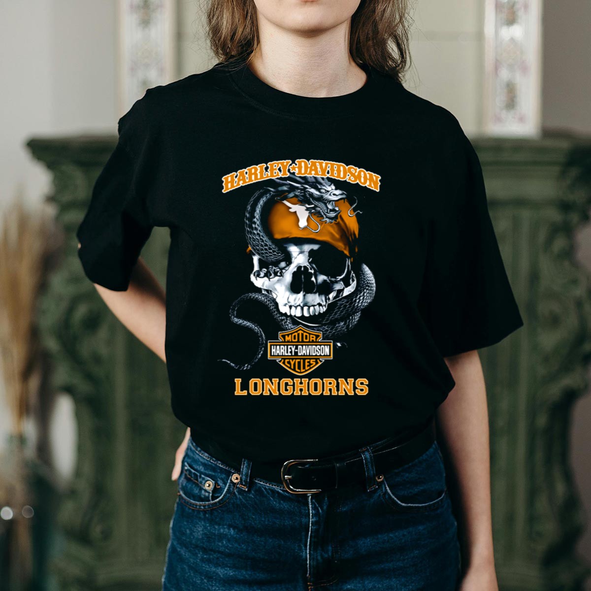 Be the first to review “Hd Texas Longhorns Skull And Snake Motorcycle Cycles T-Shirt”