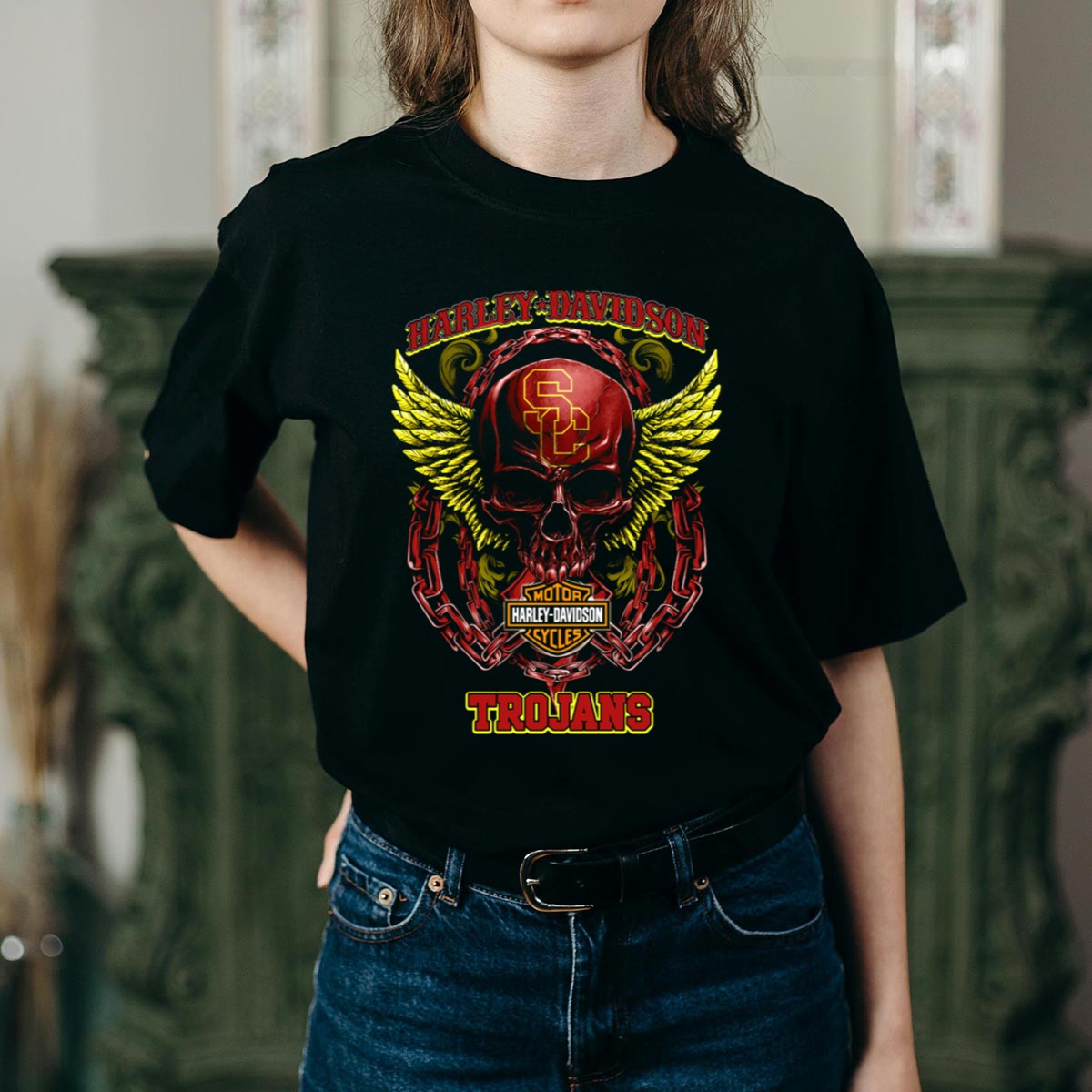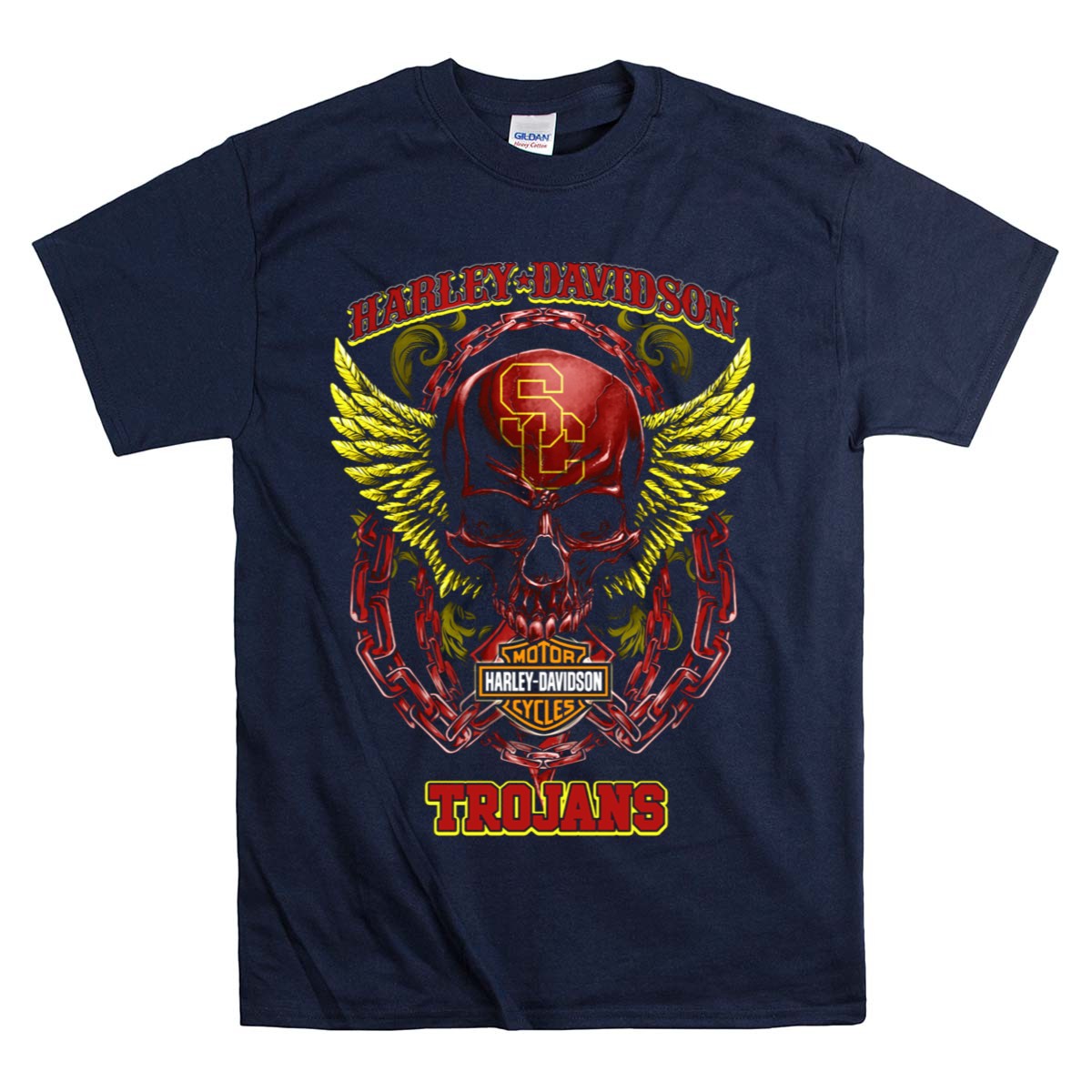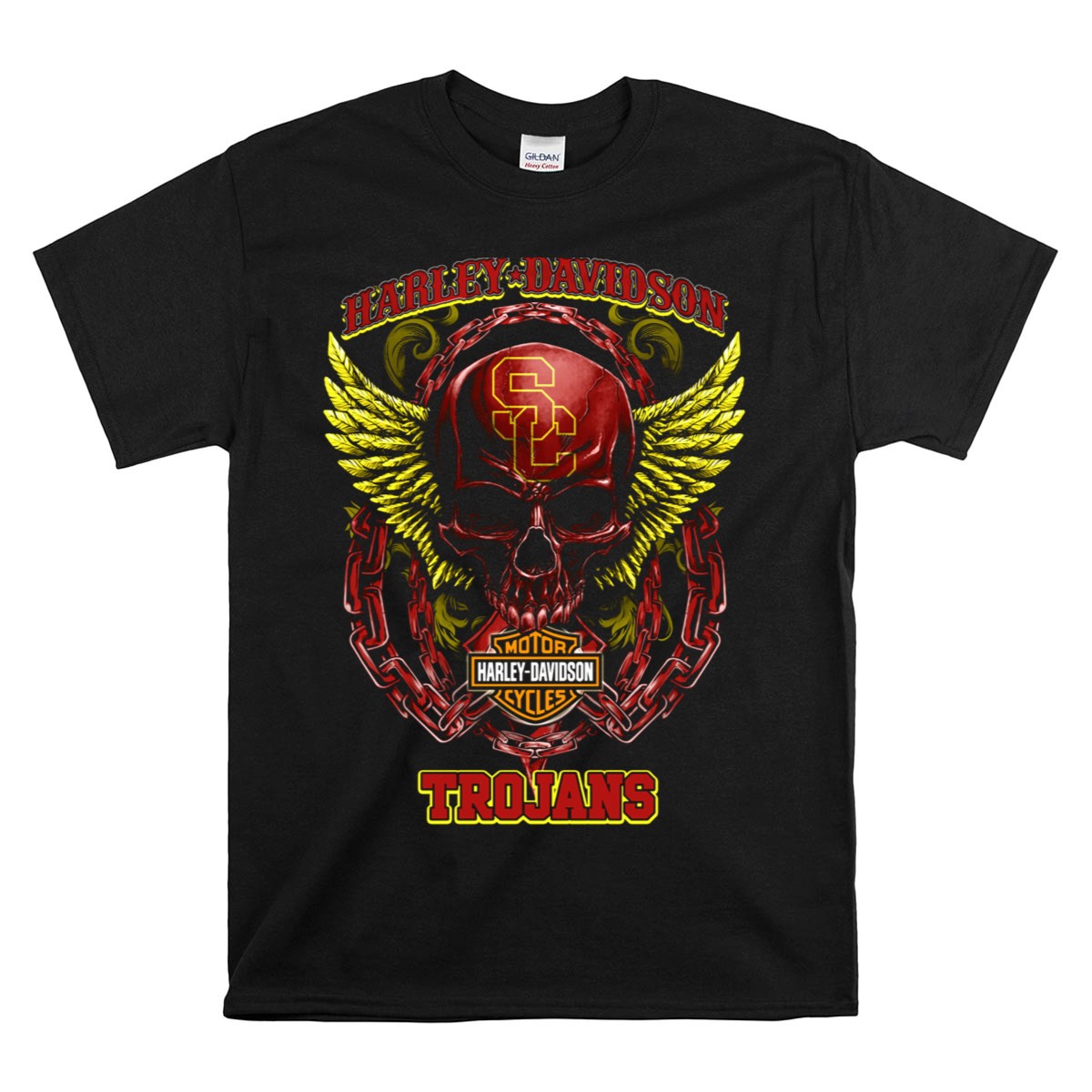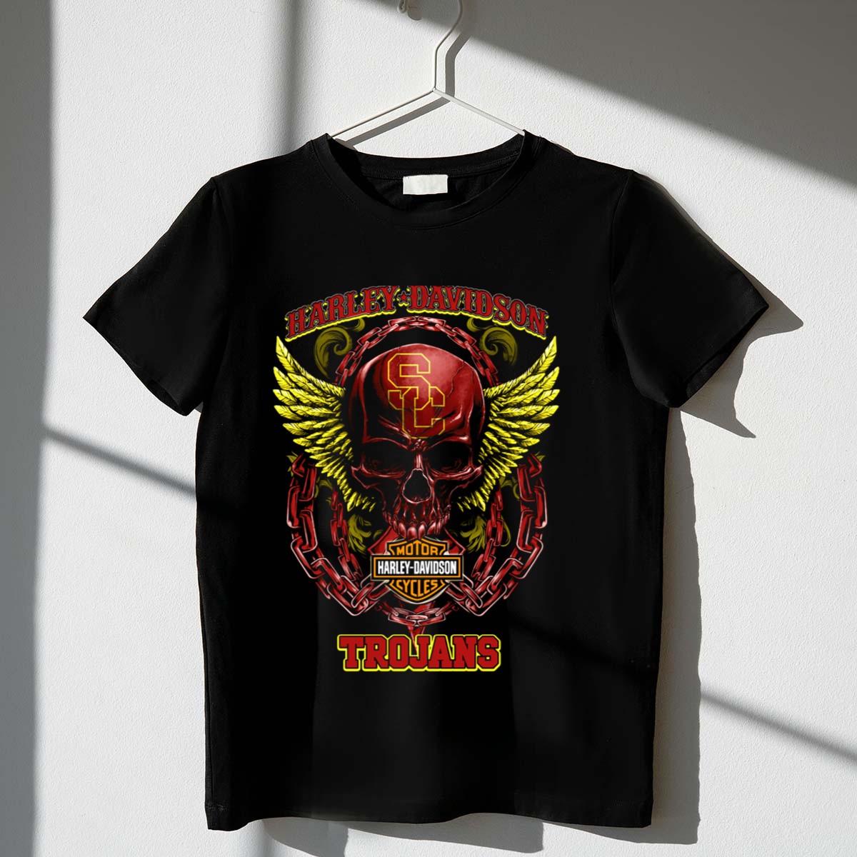 Show off your team spirit with our HD USC Trojans Skull Chain Wings T-Shirt, perfect for dedicated fans who want to blend style with pride. This eye-catching design features a bold graphic that captures the essence of the Trojans, making it an ideal choice for casual wear, themed events, or daily outings. Crafted for comfort and durability, this shirt is a must-have for anyone looking to represent their favorite team in a unique way.