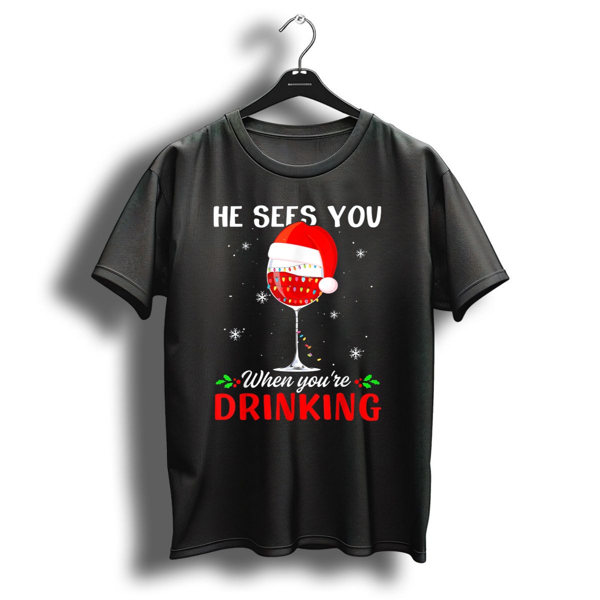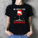 Be the first to review “He Sees You When Youre Drinking Santa Hat Wine Glass Christmas Lights T Shirt”