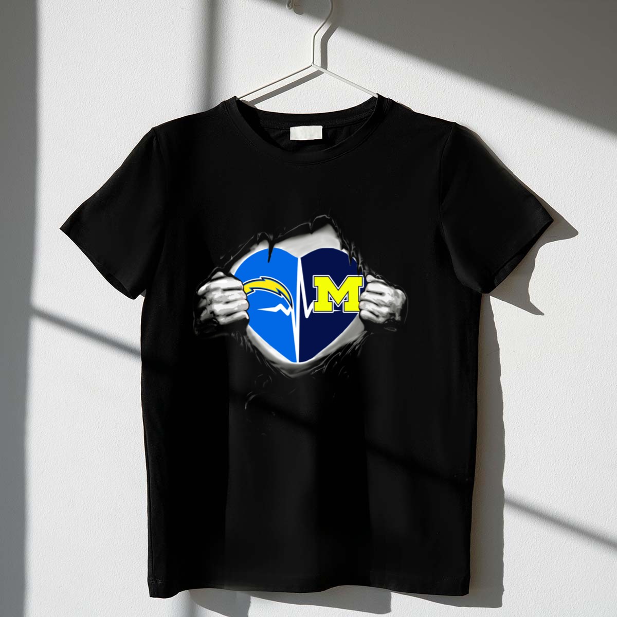 Show your love for both the Michigan Wolverines and the Los Angeles Chargers with this unique fan-made T-shirt! Perfect for dedicated supporters, this stylish tee is ideal for casual outings, themed events, or daily wear. Made in the USA, the eye-catching graphic celebrates your favorite teams, making it a must-have for any sports enthusiast.