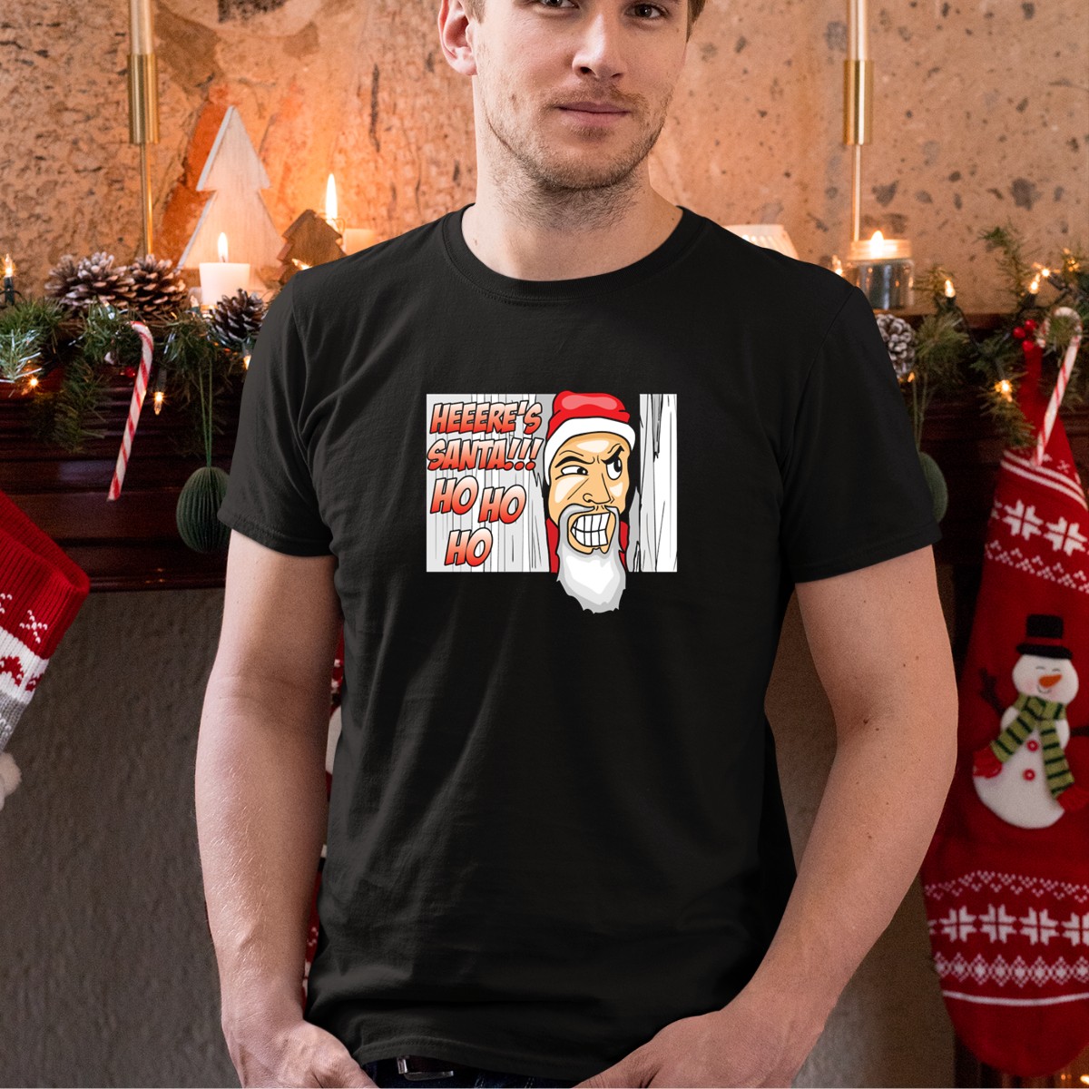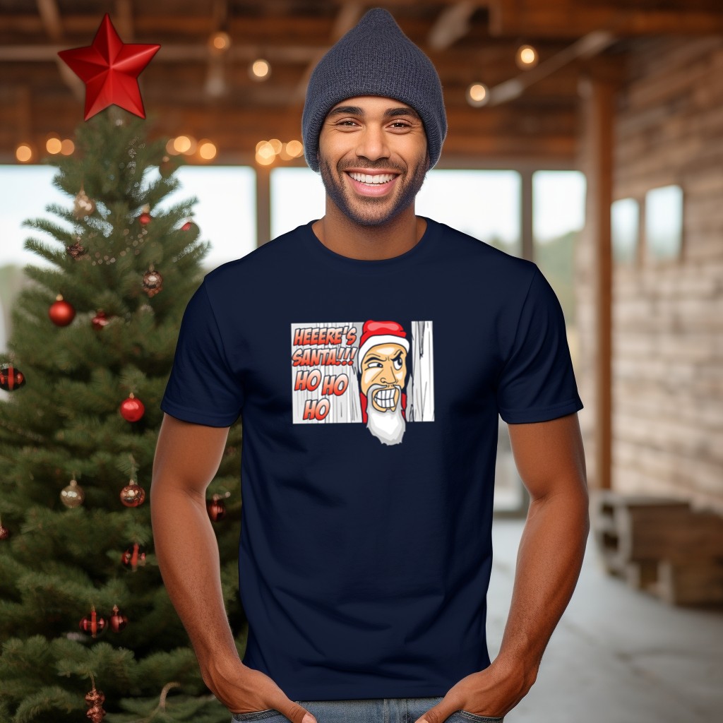 Celebrate the festive spirit with our Heeere’s Santa Ho Ho Ho Santa Christmas T-Shirt! Designed for holiday enthusiasts, this fun and playful graphic tee is perfect for family gatherings, themed events, or cozy daily wear during the Christmas season. Crafted with a unique fan-made design printed in the USA, it’s a delightful addition to your holiday wardrobe that spreads joy and cheer wherever you go.