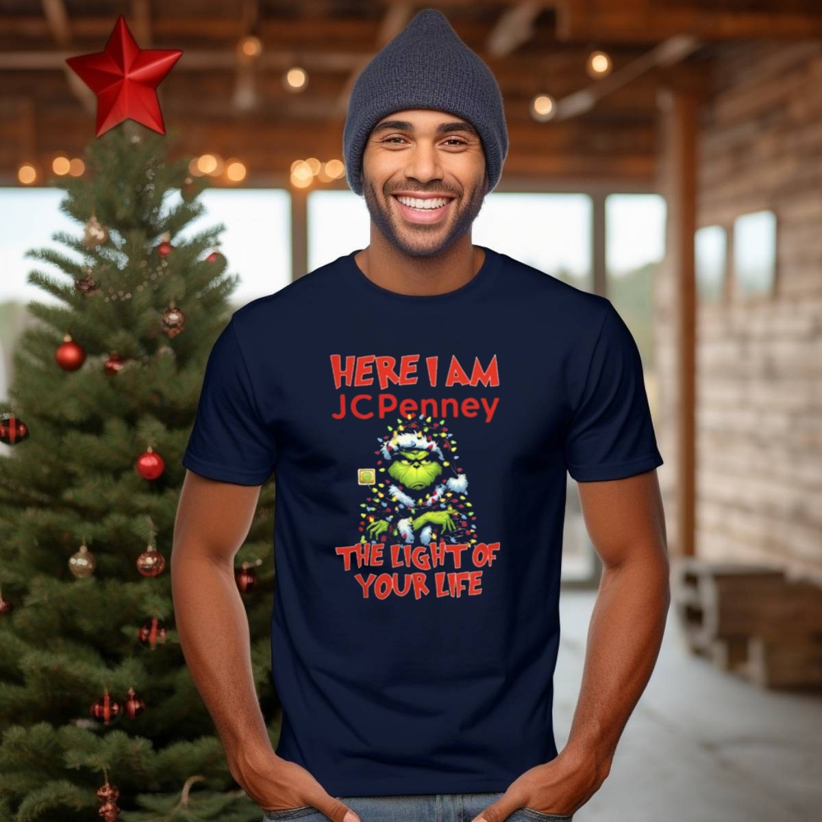 Celebrate the holiday spirit with our “Here I Am Grinch Jc Penney The Light Of Your Life Christmas Light T-Shirt”! This fun and festive graphic tee is perfect for Grinch fans of all ages. Its playful design makes it an ideal choice for casual wear, themed events, and daily outings during the holiday season. Crafted with comfort and style in mind, this shirt is a must-have for anyone looking to spread some Christmas cheer!
