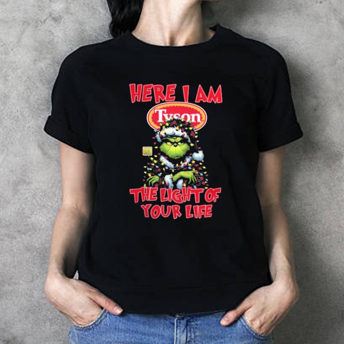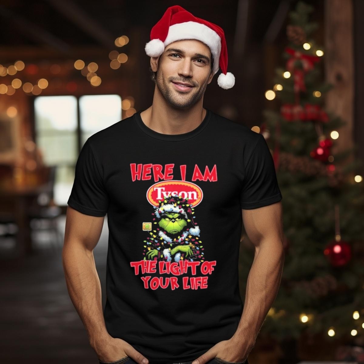 Celebrate the festive spirit with our “Here I Am Tyson Grinch The Light Of Your Life” Christmas T-Shirt, perfect for fans of the beloved holiday classic! This fun and whimsical design is ideal for casual wear, themed events, or simply spreading cheer during the holiday season. Crafted for ultimate comfort and style, this shirt is a must-have for anyone looking to add a touch of Grinch-inspired joy to their wardrobe.