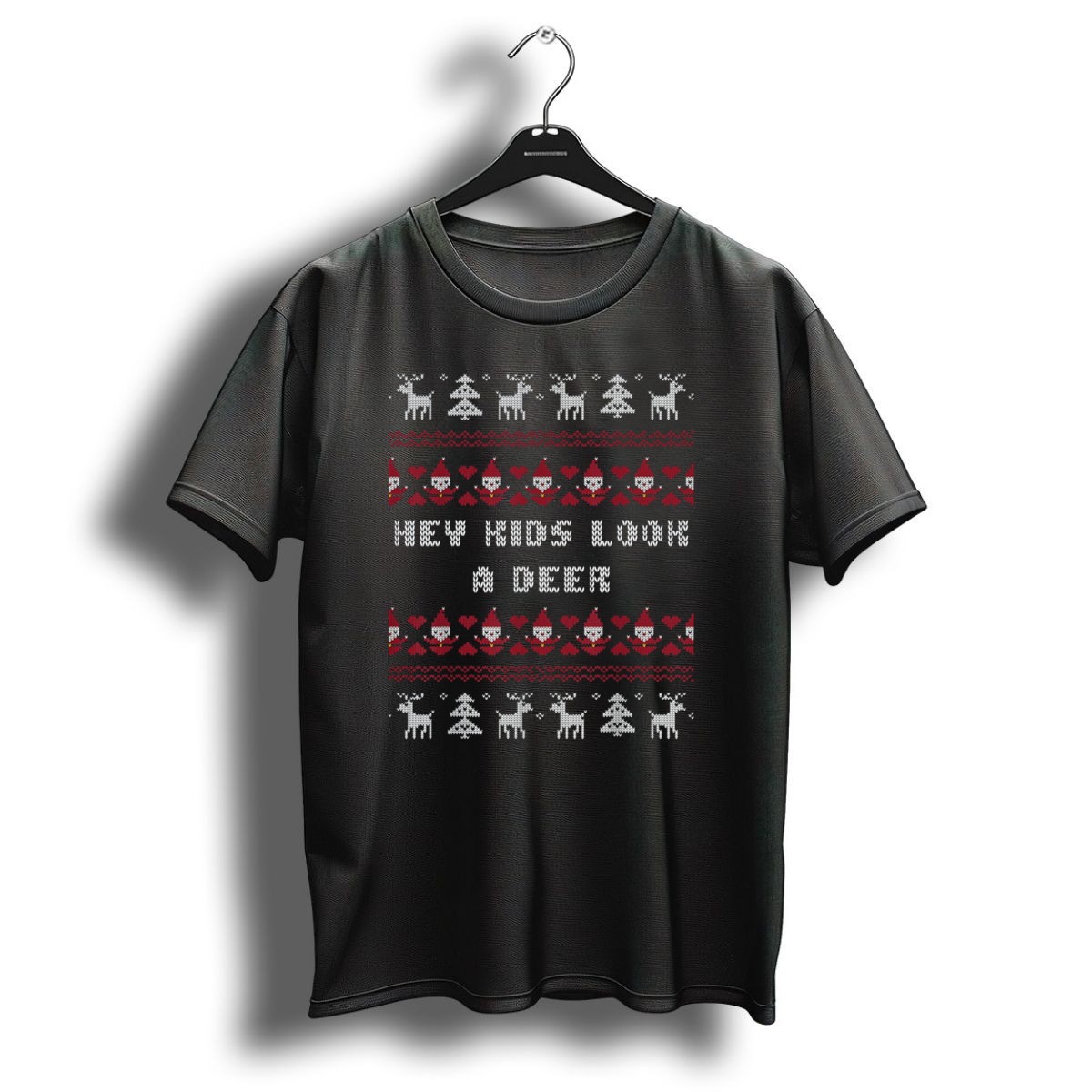 Celebrate the holiday spirit with our “Hey Kids Look A Deer” Christmas Reindeer T-Shirt! Perfect for children and families alike, this fun and festive tee features an adorable reindeer graphic that will bring joy to any themed event or casual outing during the holiday season. Made for comfort and style, it’s a delightful addition to your loved ones’ winter wardrobe that captures the magic of Christmas!