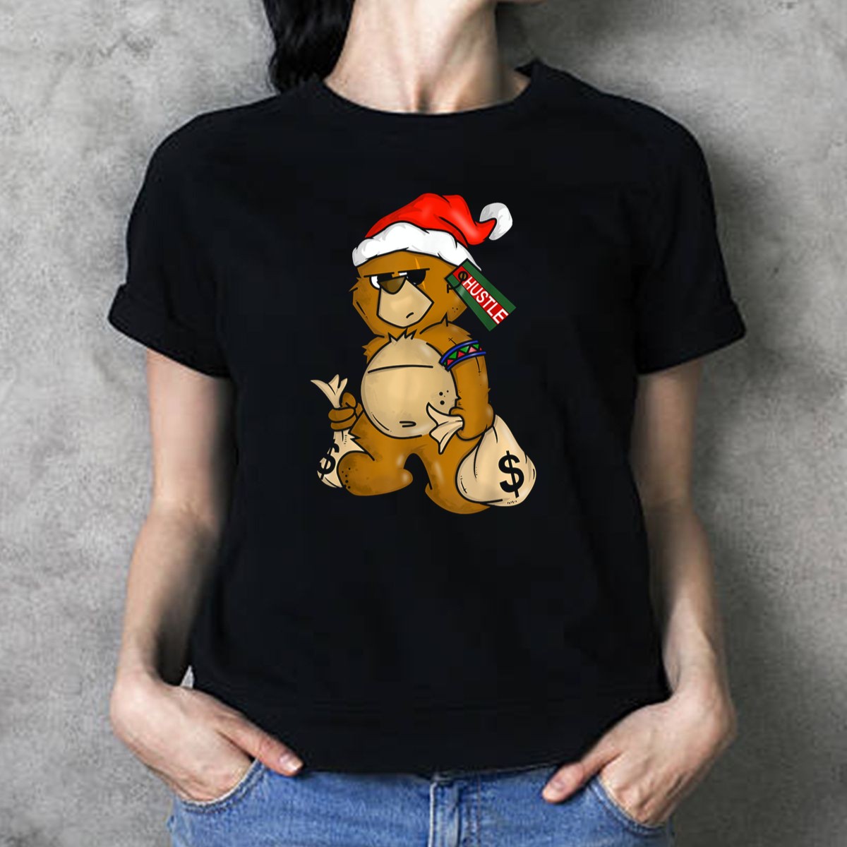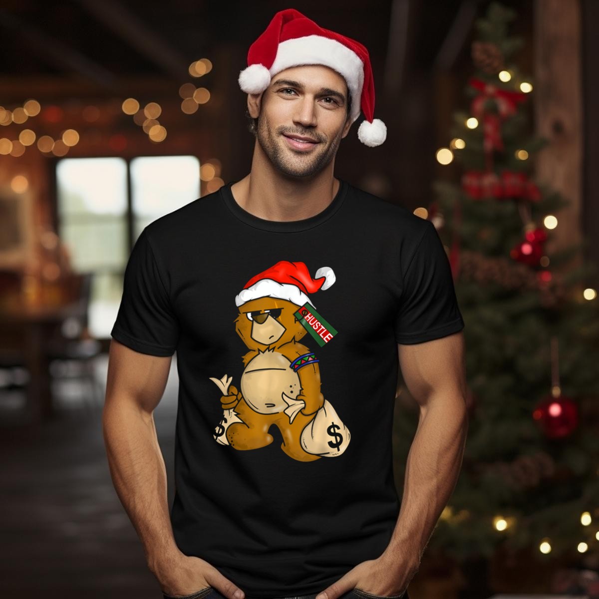Be the first to review “Hip Hop Teddy Bear Santa Hustle Money Bags Christmas T Shirt”