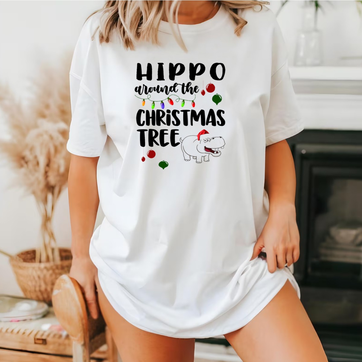 Be the first to review “Hippo Around The Christmas Tree With Santa Hat And Christmas Ornaments T-Shirt”