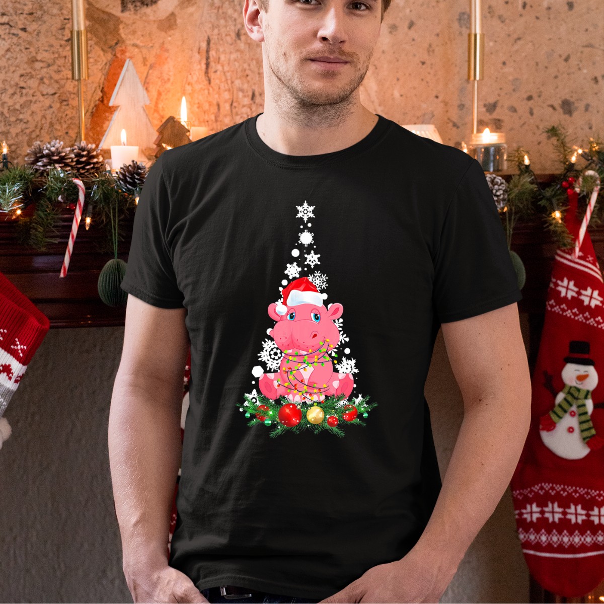 Be the first to review “Hippopotamus Christmas Animal Light With Santa Hat And Snowflakes T-Shirt”